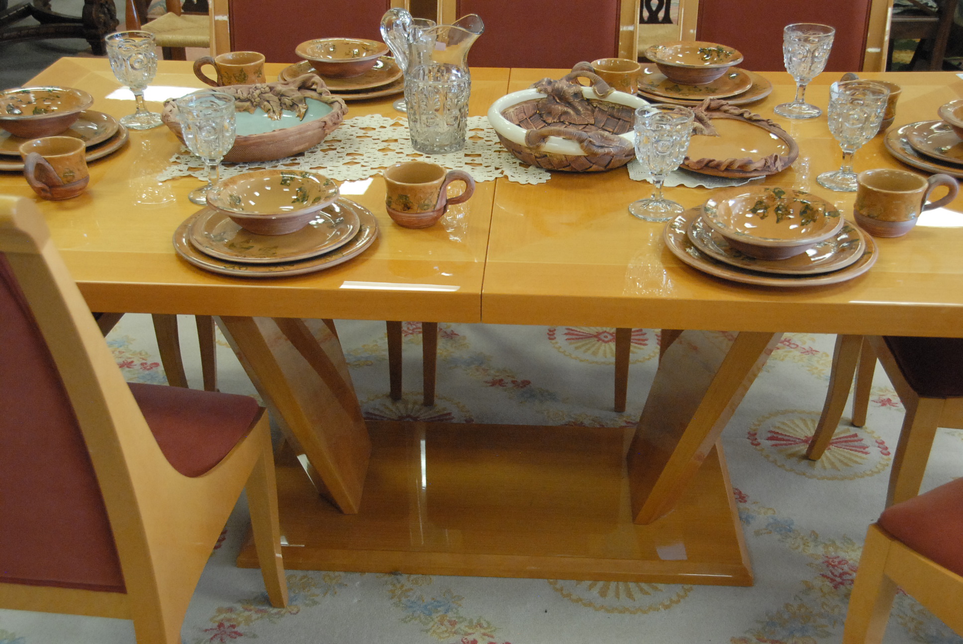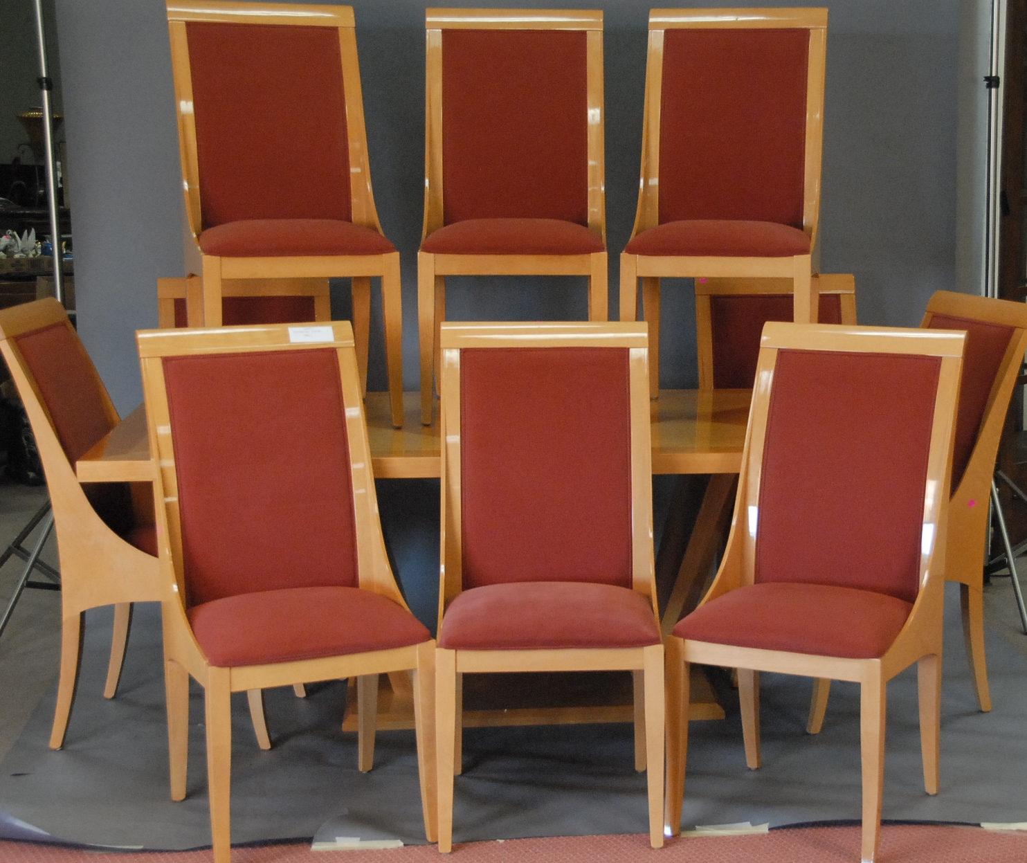 Lot 360: Costantini Pietro eleven piece dining set including ten chairs and a table with one 20 leave in like new condition, signed Costan…