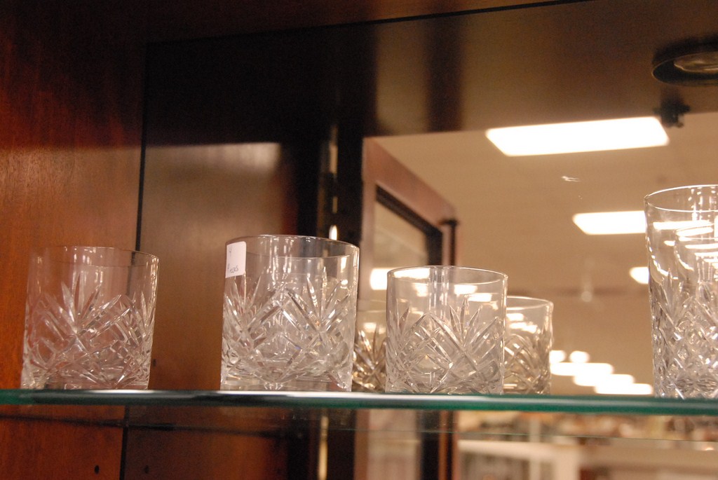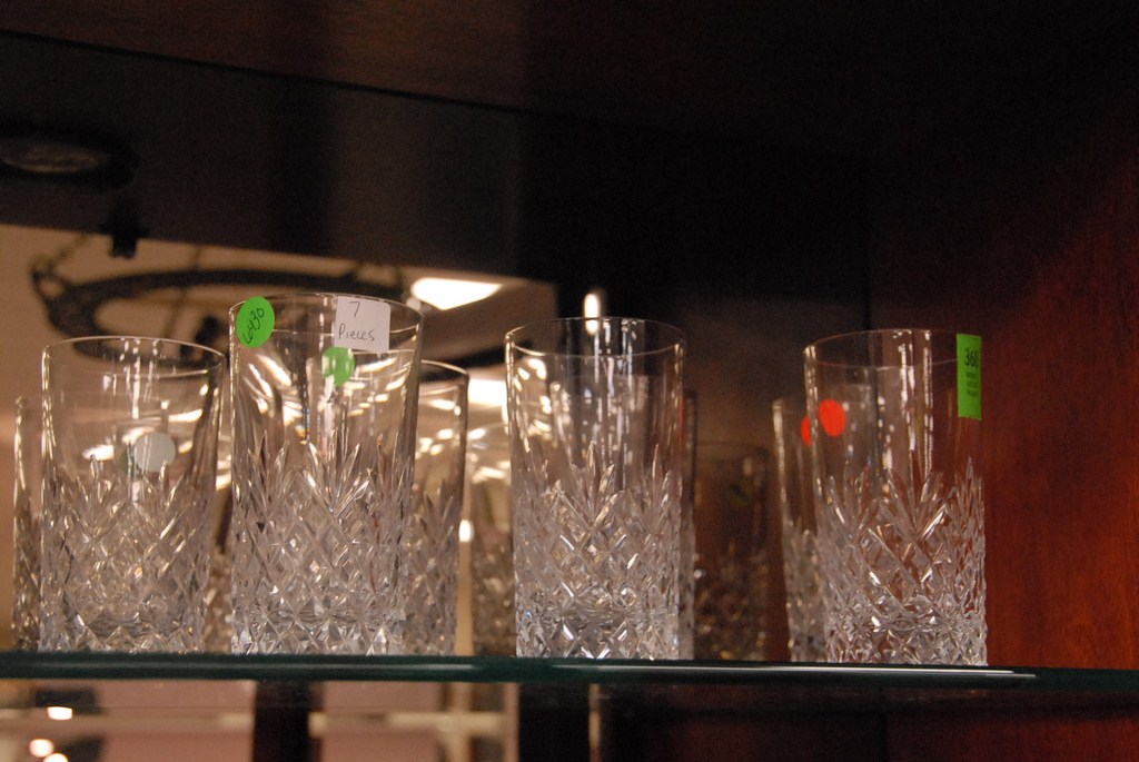 Eleven piece set of Waterford crystal four rock glasses and seven tall glasses.