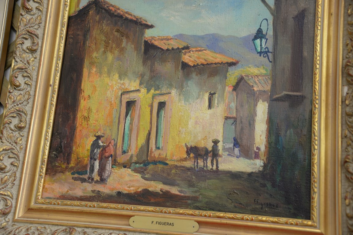 Lot 360: Francisco Marsa Figueras 1902-1969 oil on canvas South American street signed lower right F. Figueras. 19 x 17