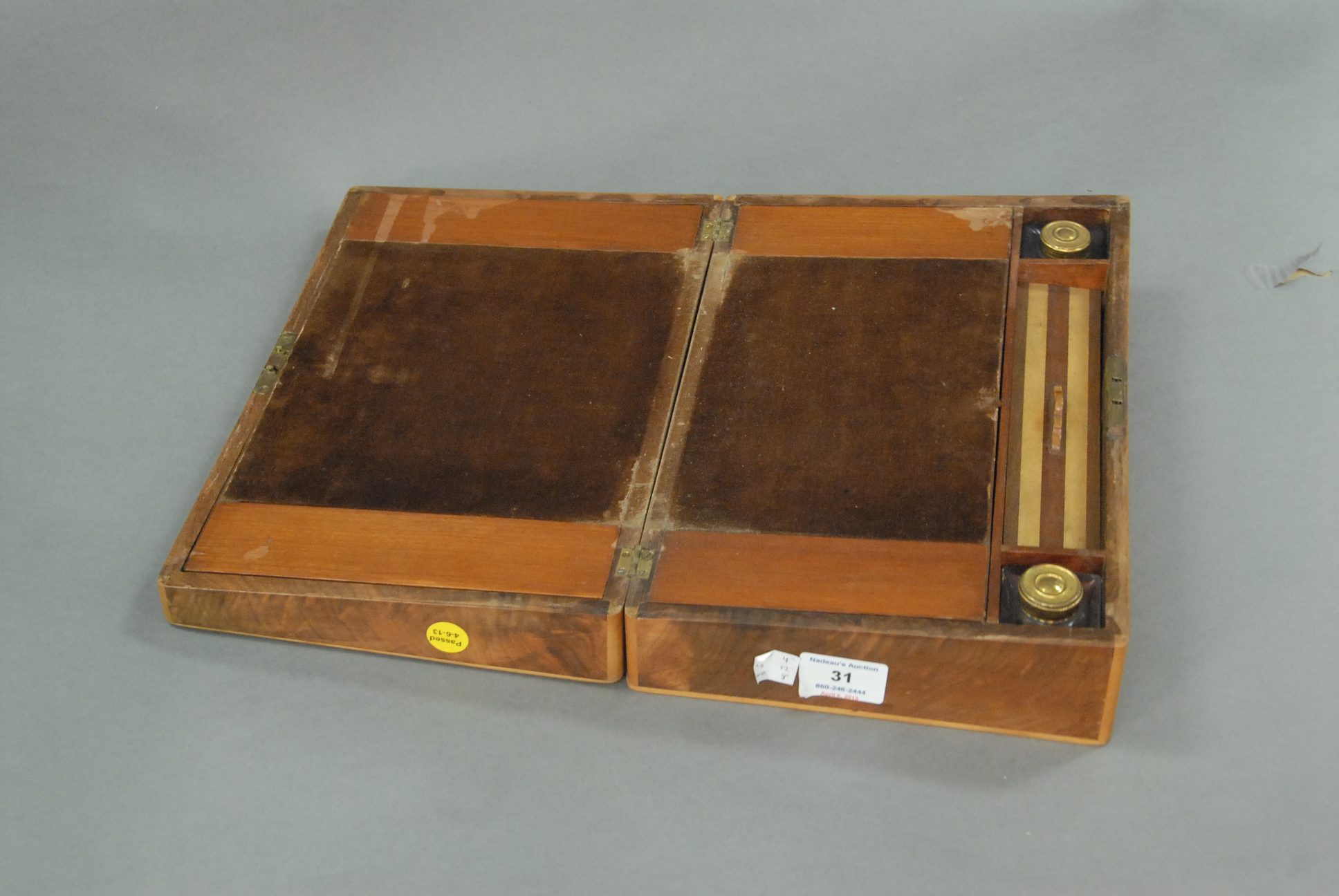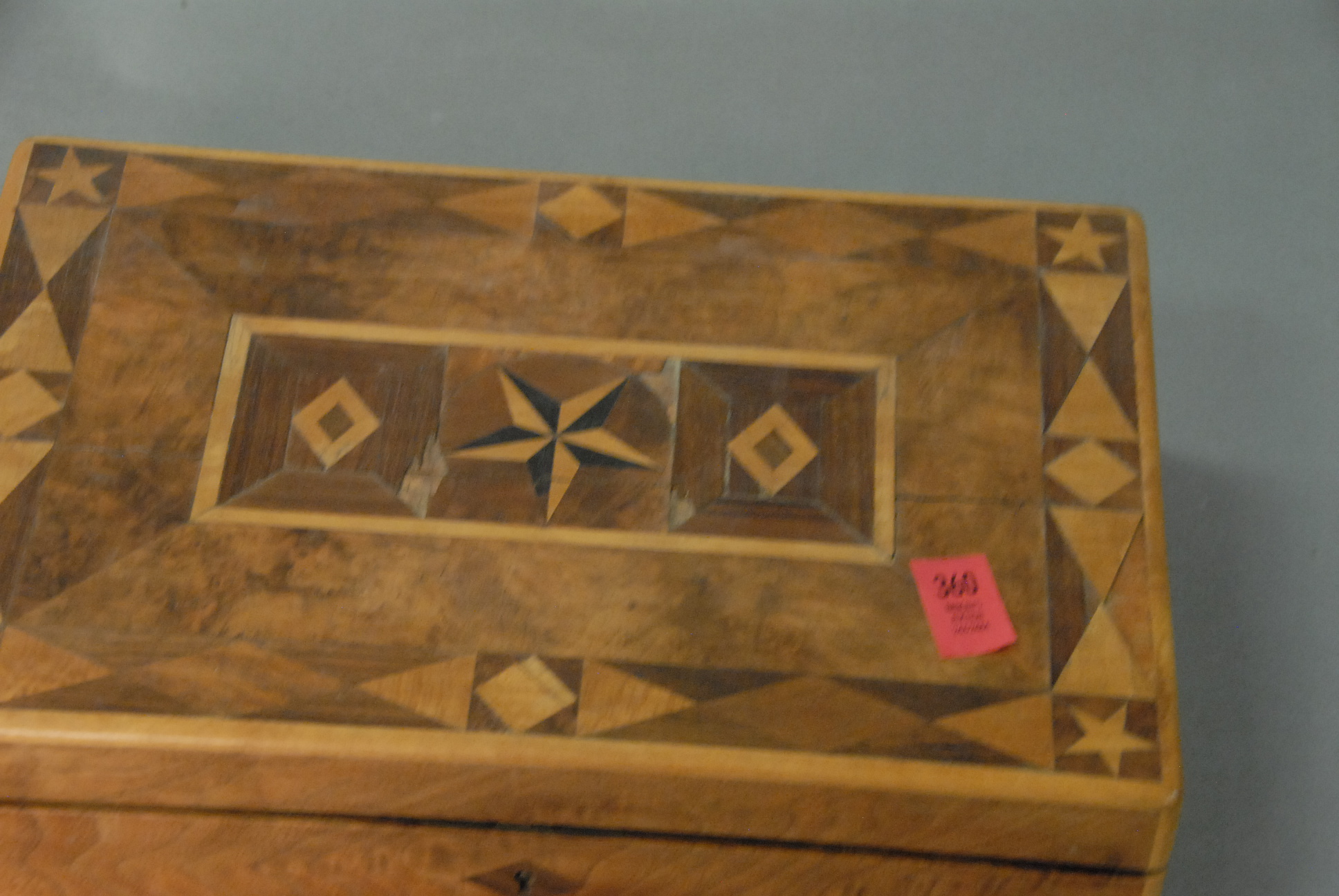 Lot 360: Inlaid lap desk with compass star inlay. ht. 4in. lg. 13in. dp. 9in. Provenance: Estate of Nancy Sachse, Hamden, Connecticut