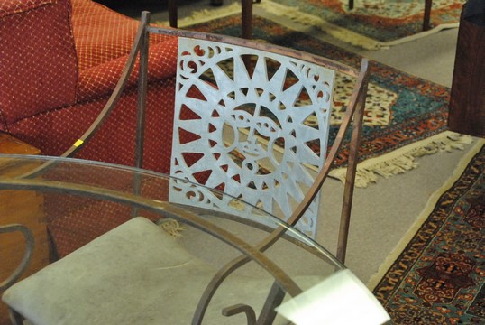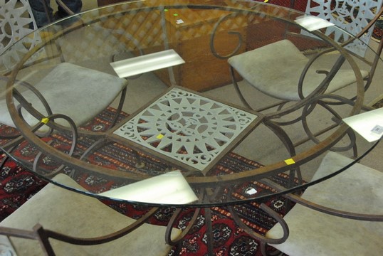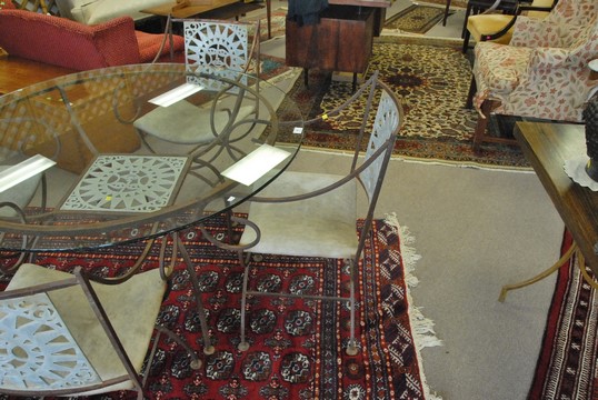 Iron glass top table and four chairs