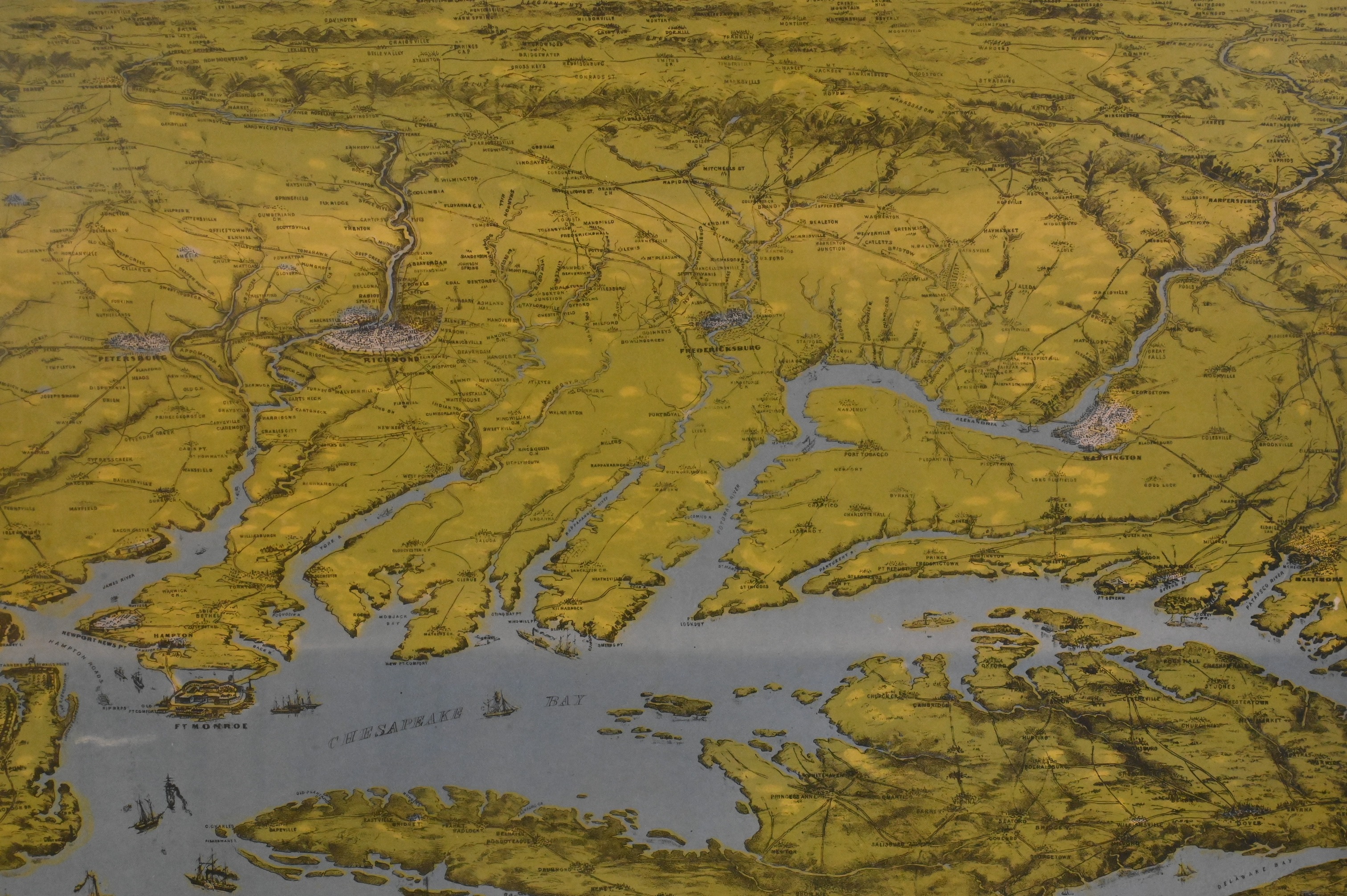 Bird’s Eye View of Virginia, Maryland, Delaware, the District of Columbia, and of the Chesapeake Bay and beyond at the peak of the American Civil War
