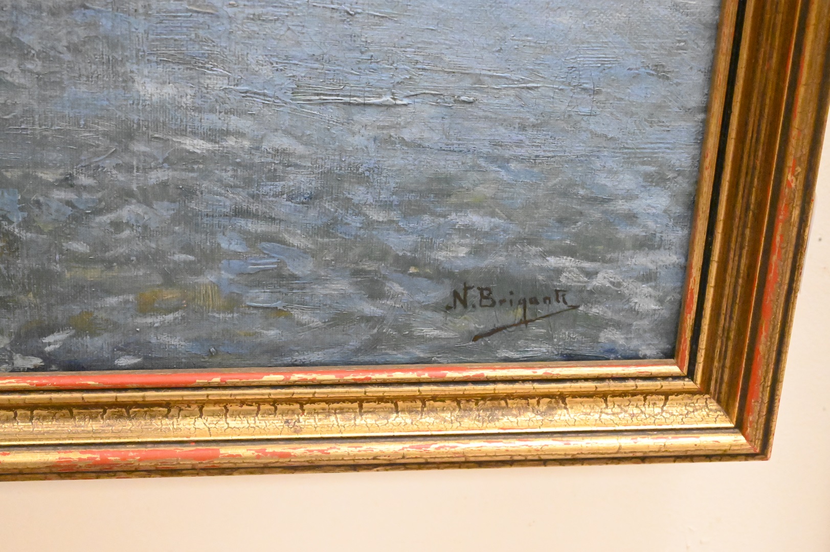 Nicholas Briganti (1861 – 1944), oil on canvas, “The Grand Canal, Venice”, signed lower right “N. Briganti”, 17 1/2″ x 39″.