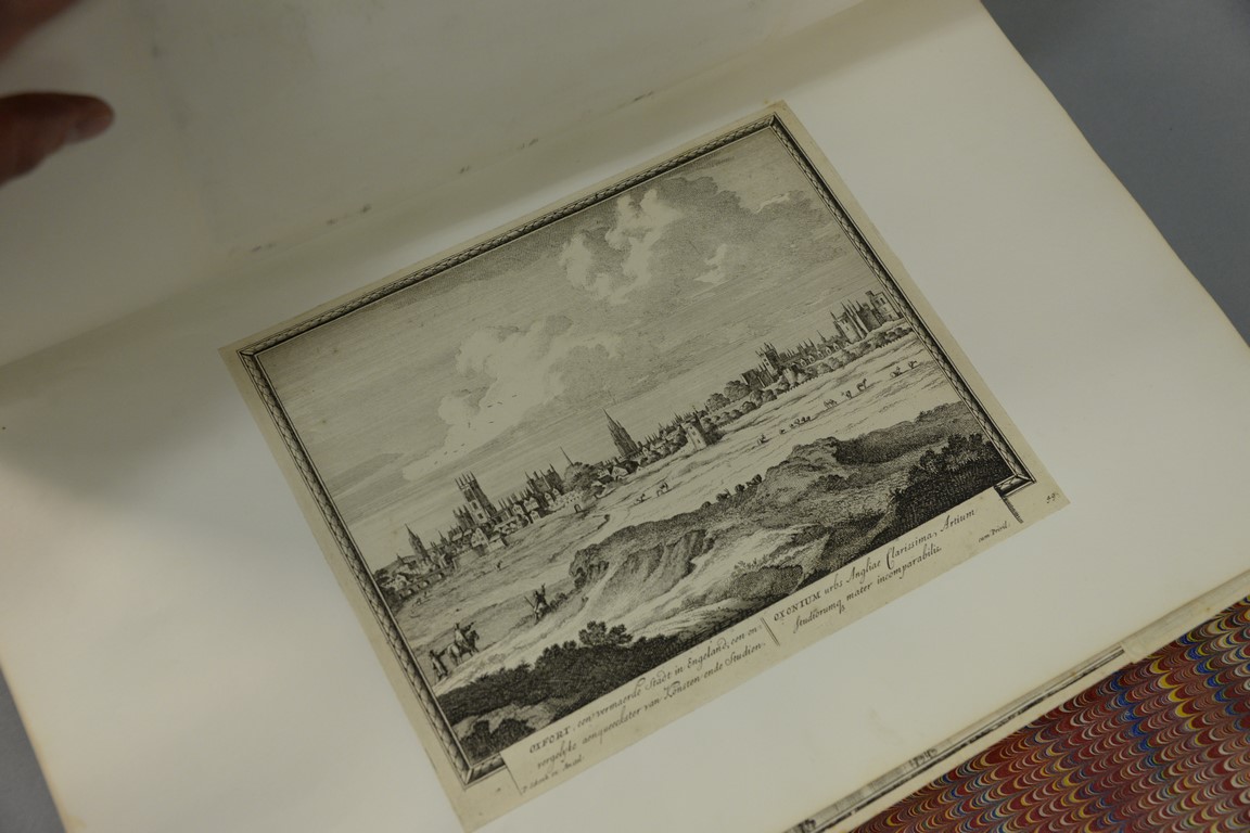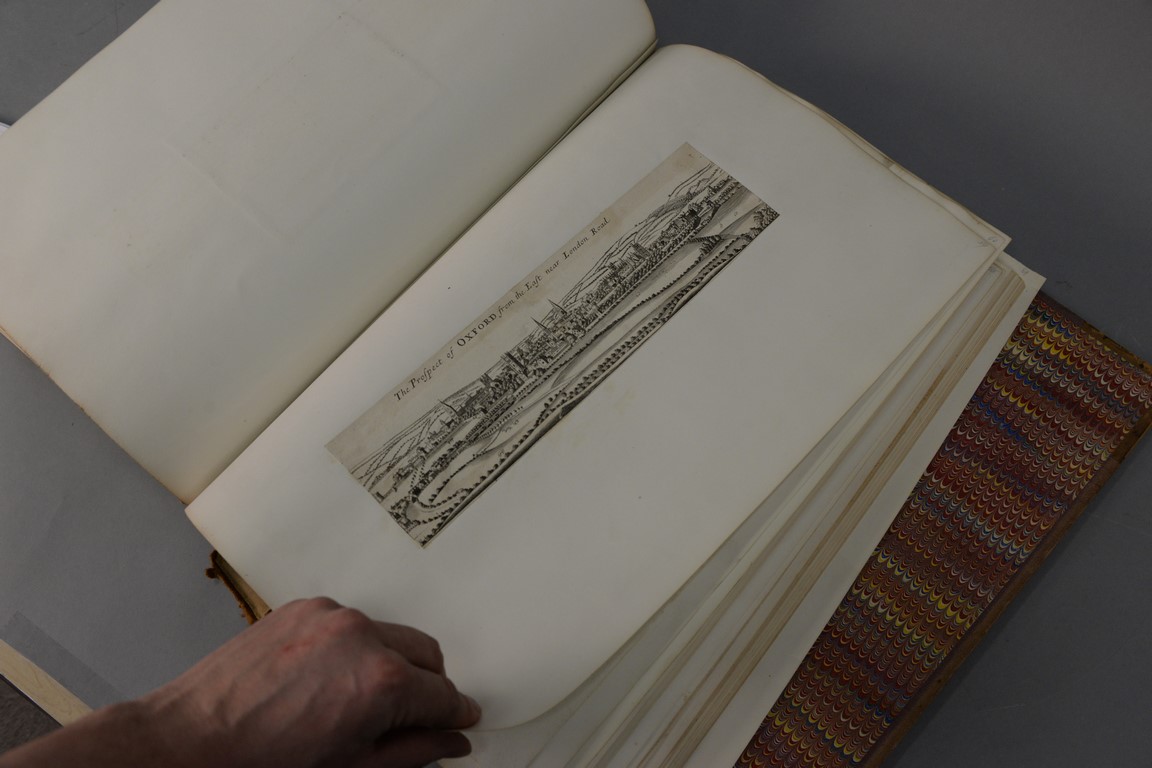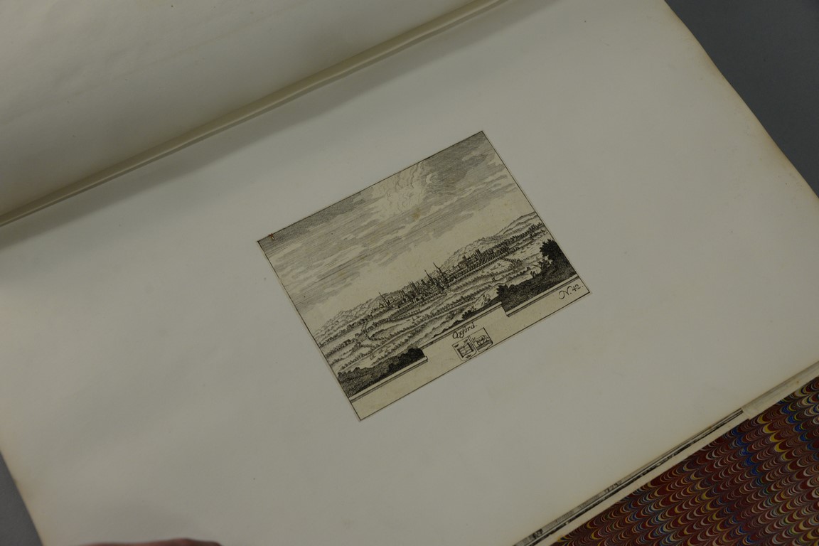 Lot 360: Oxford General Views of the City, scrapbook of engravings to include: Oxoniae Prospectus, A Prospect of the University and City o…