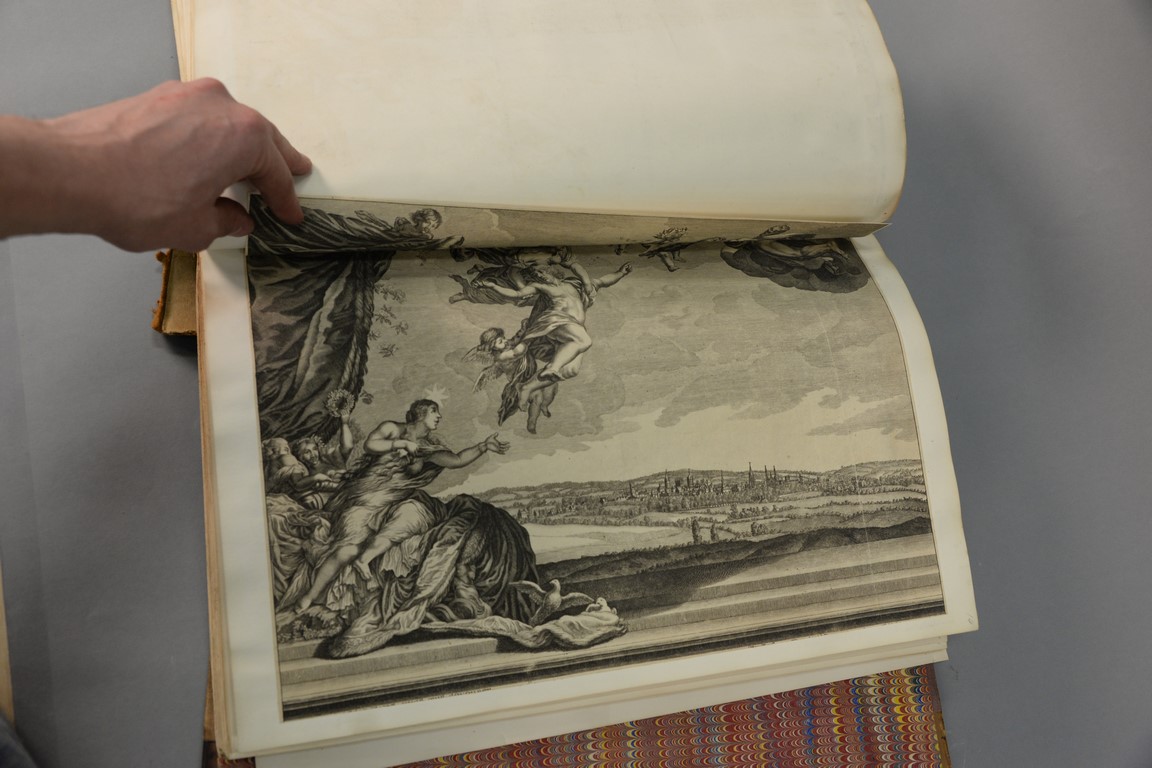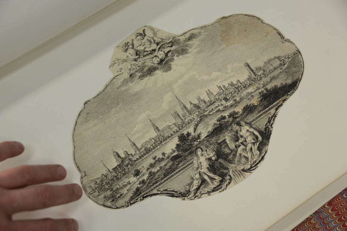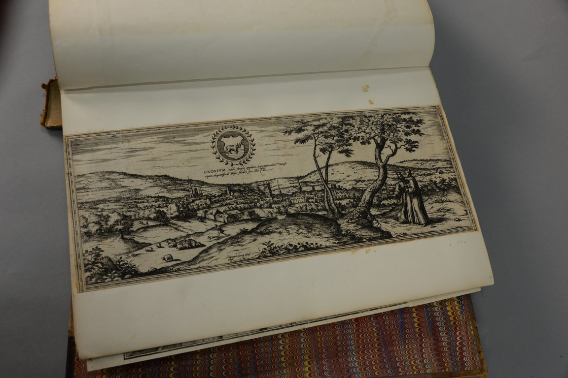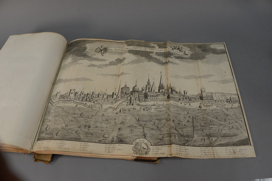 Lot 360: Oxford General Views of the City, scrapbook of engravings to include: Oxoniae Prospectus, A Prospect of the University and City o…