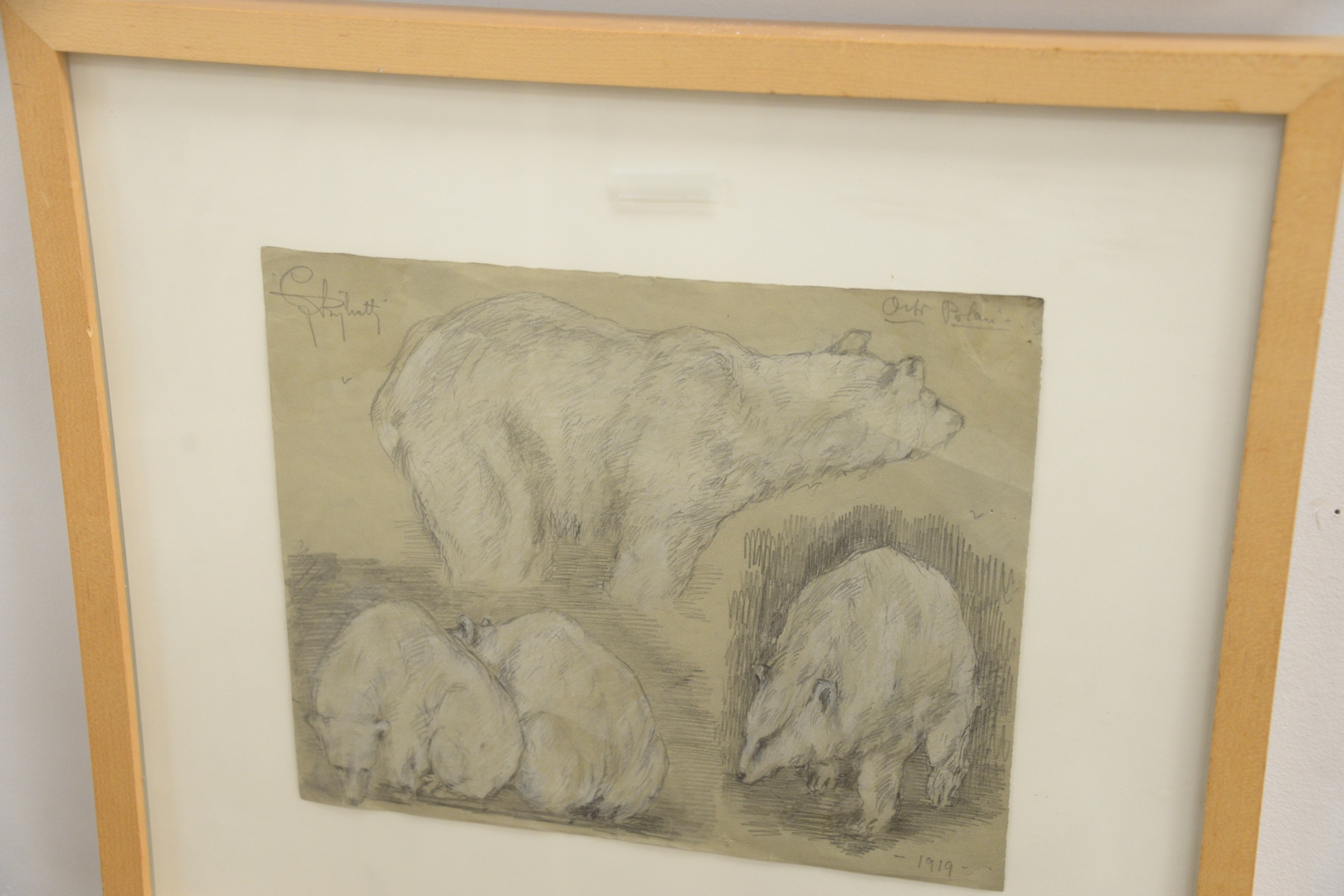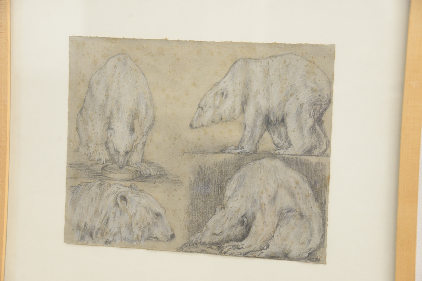 Lot 360: Two Framed Polar Bear Drawings, pencil and watercolor on paper, one signed indistinctly upper left and dated ‘1919’ lower right, the other unmarked, sheet size 9 3/4 x 11 3/4.