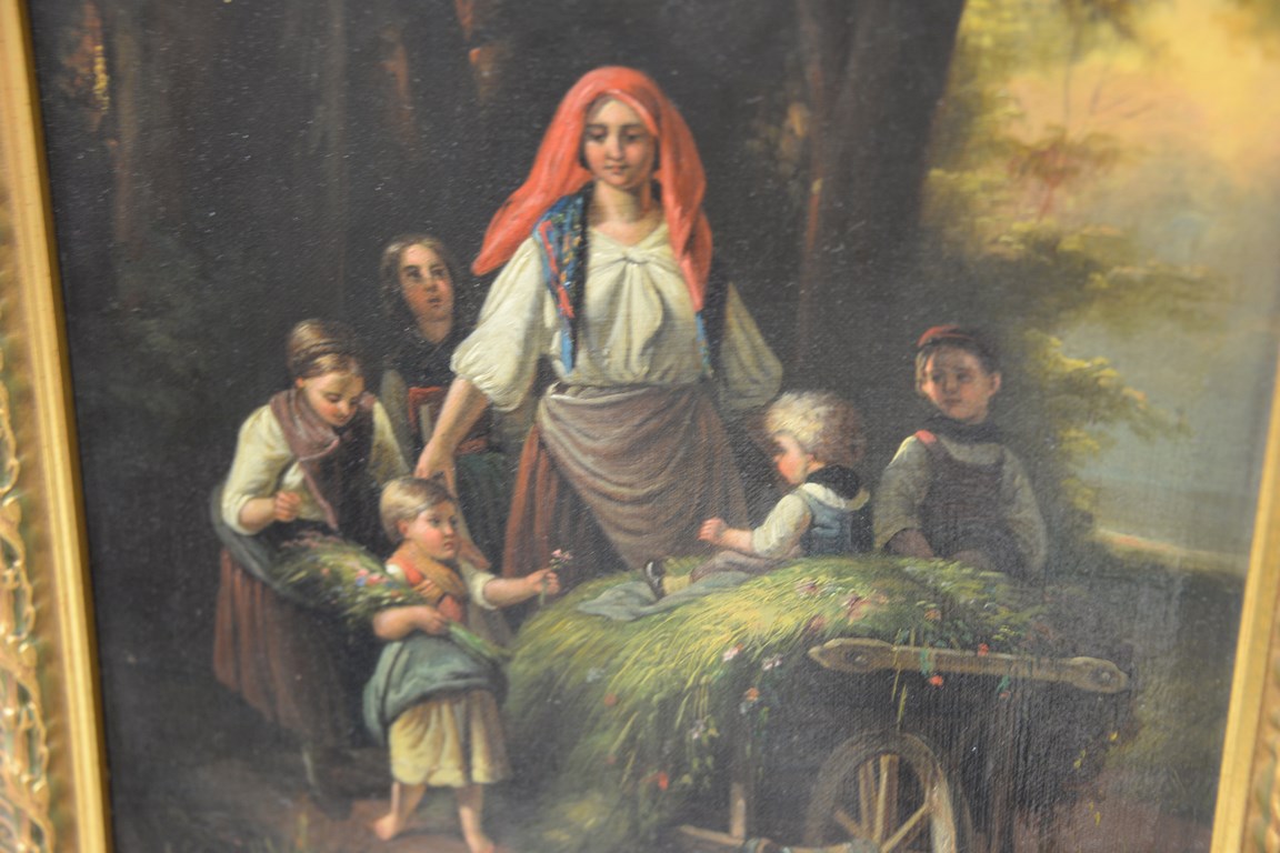 Unsigned 19th century oil on canvas of mother with her children. 12 1/2 x 10 1/2