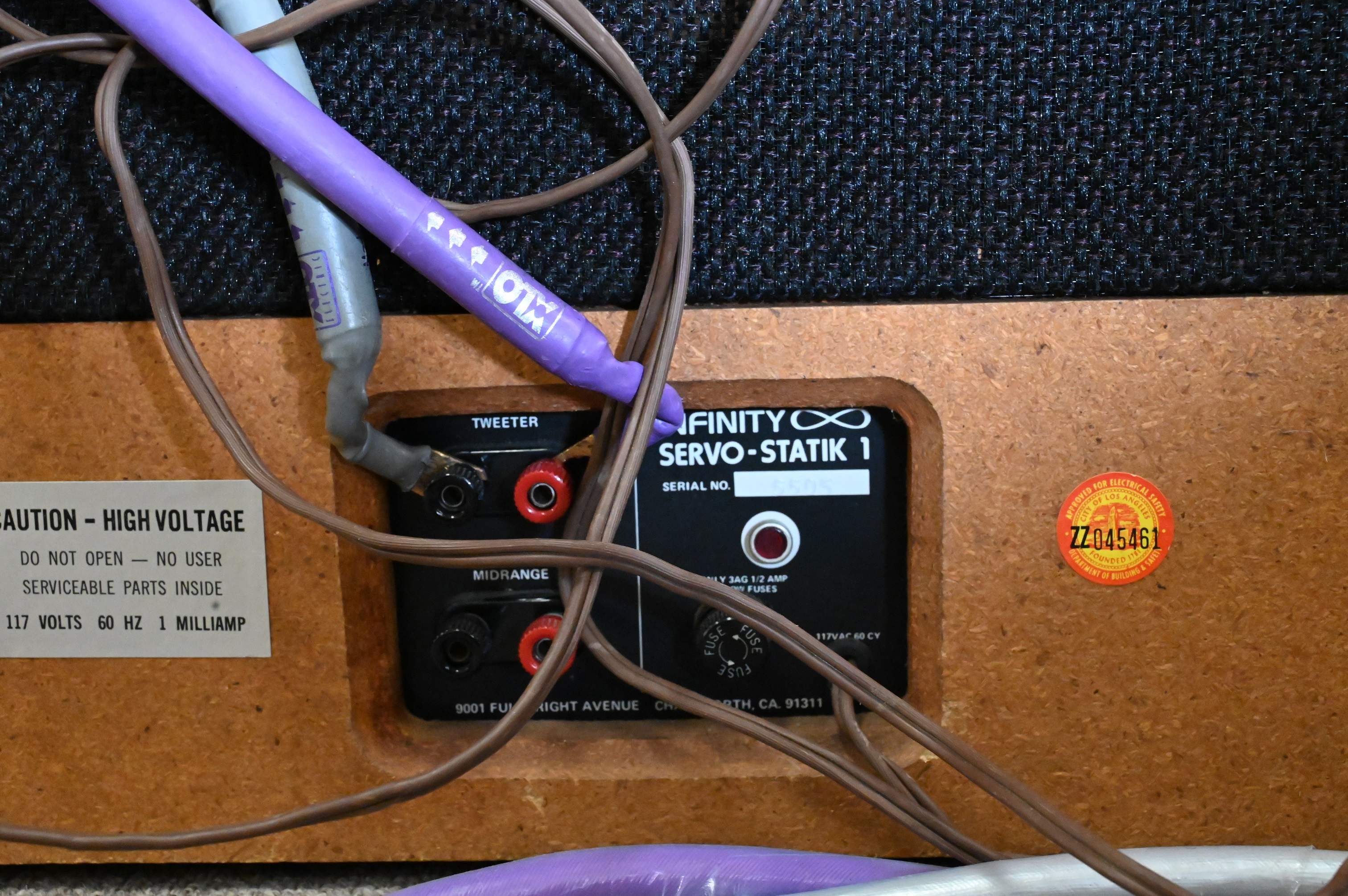 A Pair of Infinity Servu Statile I Speakers, height 37 inches, width 28 inches.