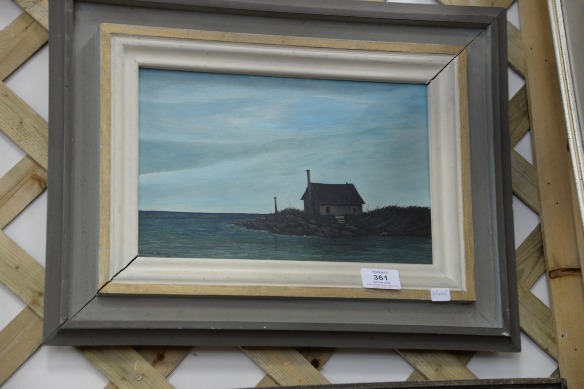 Lot 361: Bruce Penney 1929 two oil on board paintings, Tide Out at Docks signed lower left Bruce Penney 65 and Cabin on Water’s Edge signed…