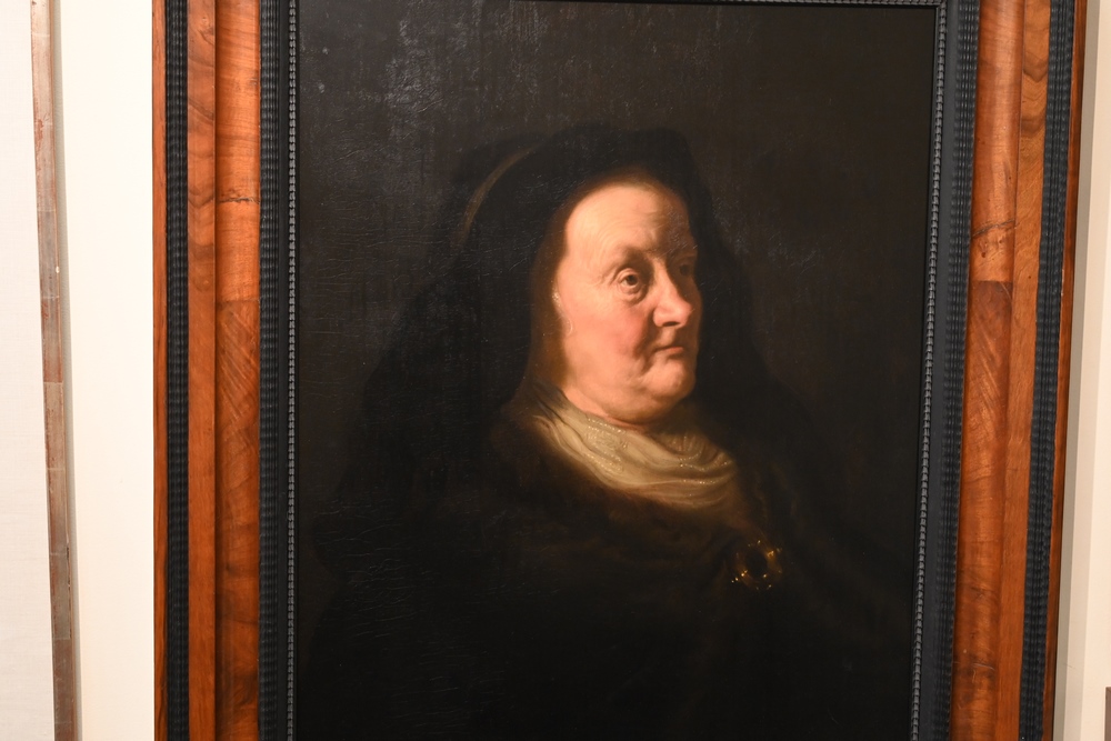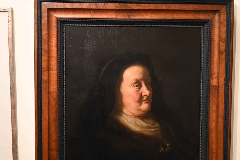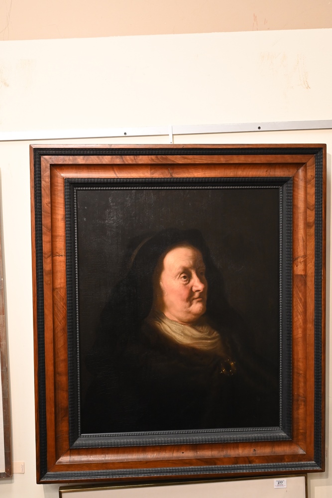 Lot 361: Follower of Salomon Koninck Dutch, 1609 – 1656 portrait of an elderly woman oil on panel 18th century or later unsigned having partial label adhered to the reverse 31 x 25 1/2 inches