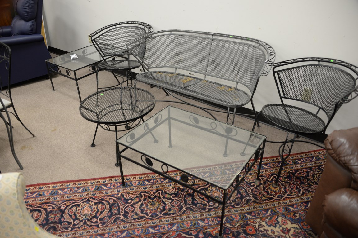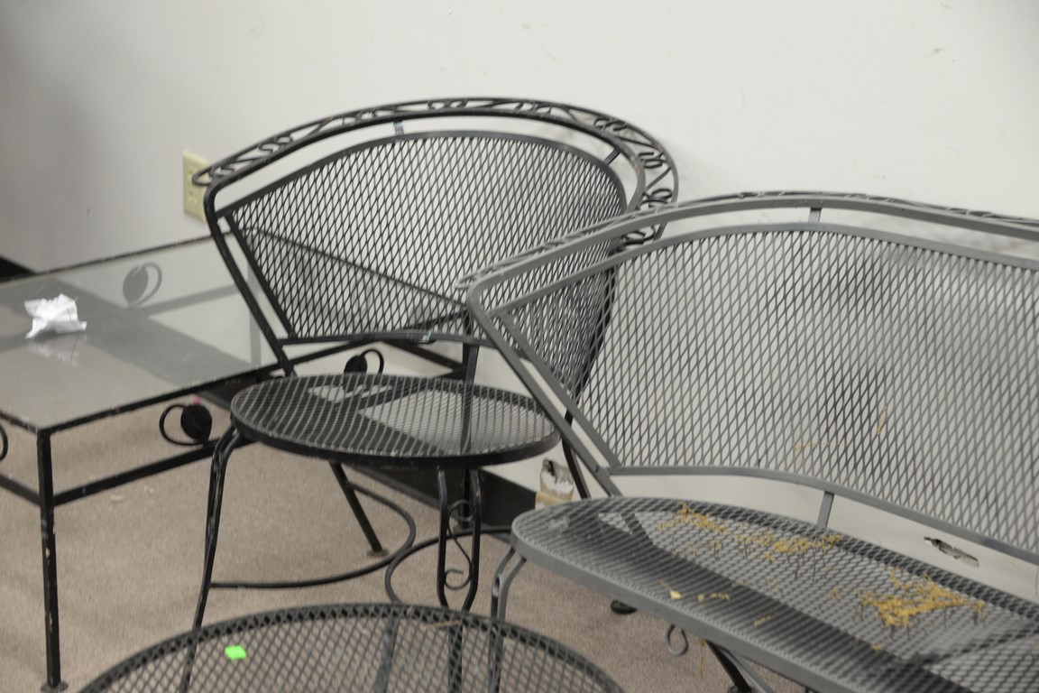 Four piece mesh iron outdoor set including a loveseat wd. 54 in.