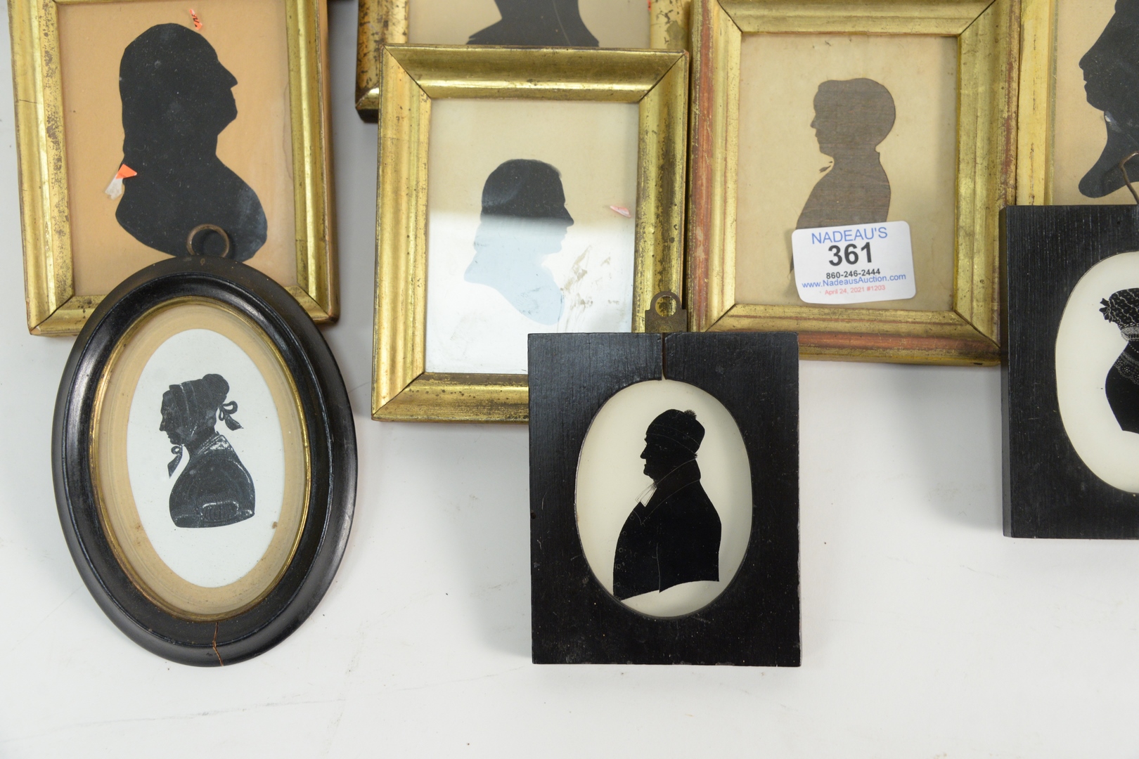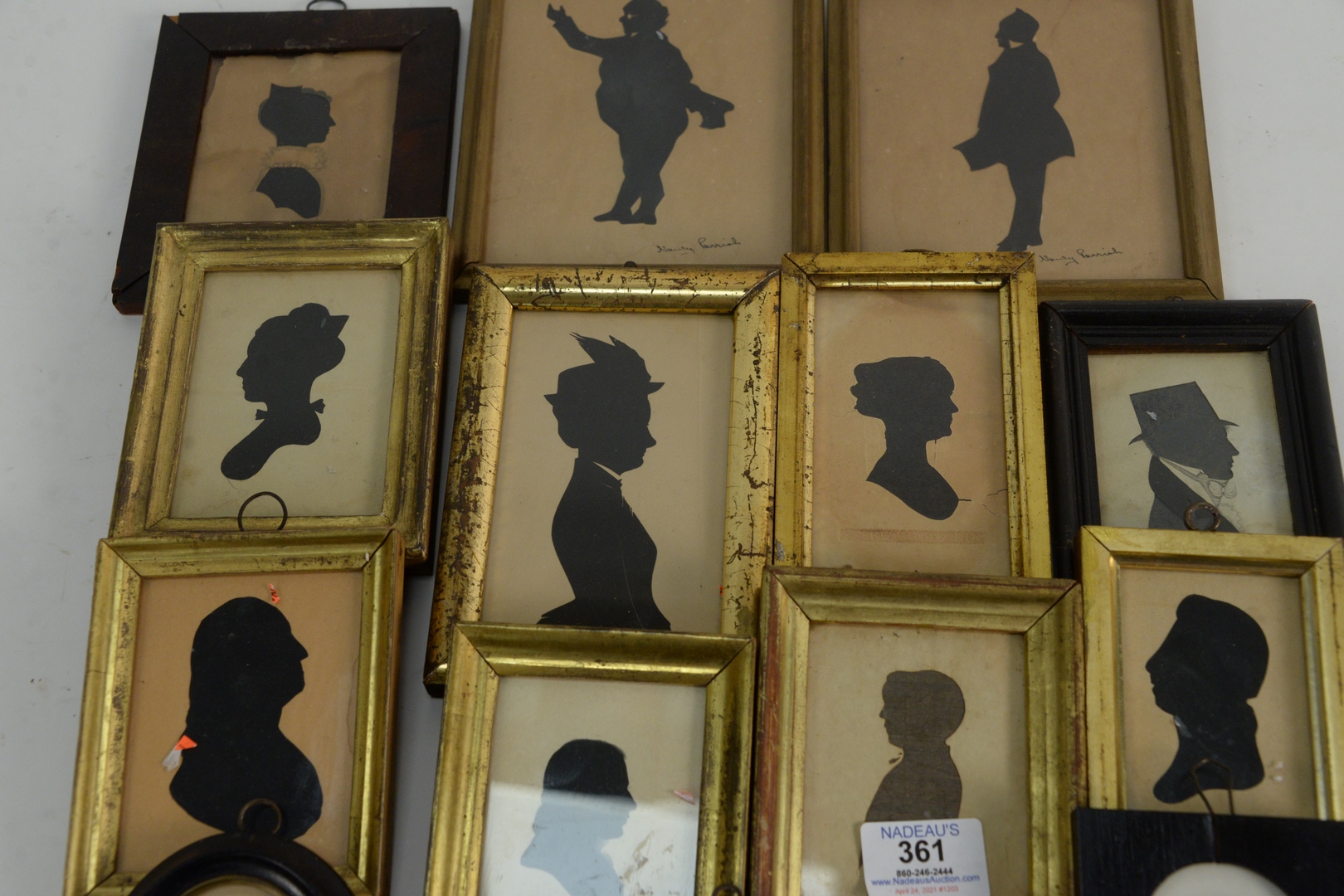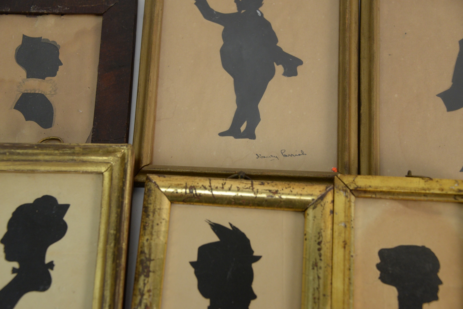 Lot 361: Large Group of 13 Framed Silhouette Portraits, two signed Nancy Parrish, and one signed illegibly, largest overall 6 3/4 x 6.