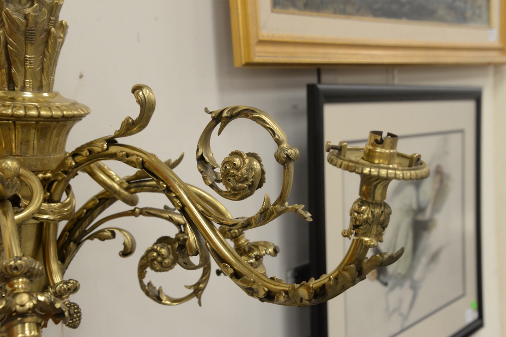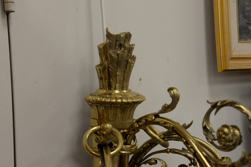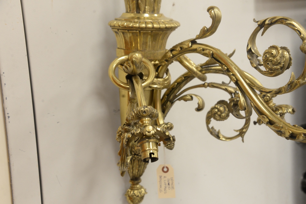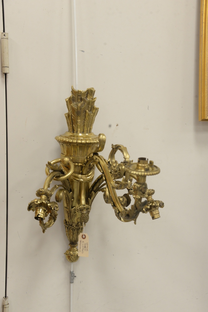 Lot 361: Large H. Luppens Bruxelles French Three Light Bronze Sconce, having foundry mark, height 21 inches.