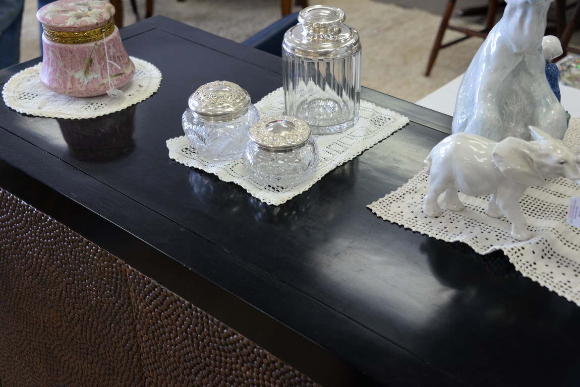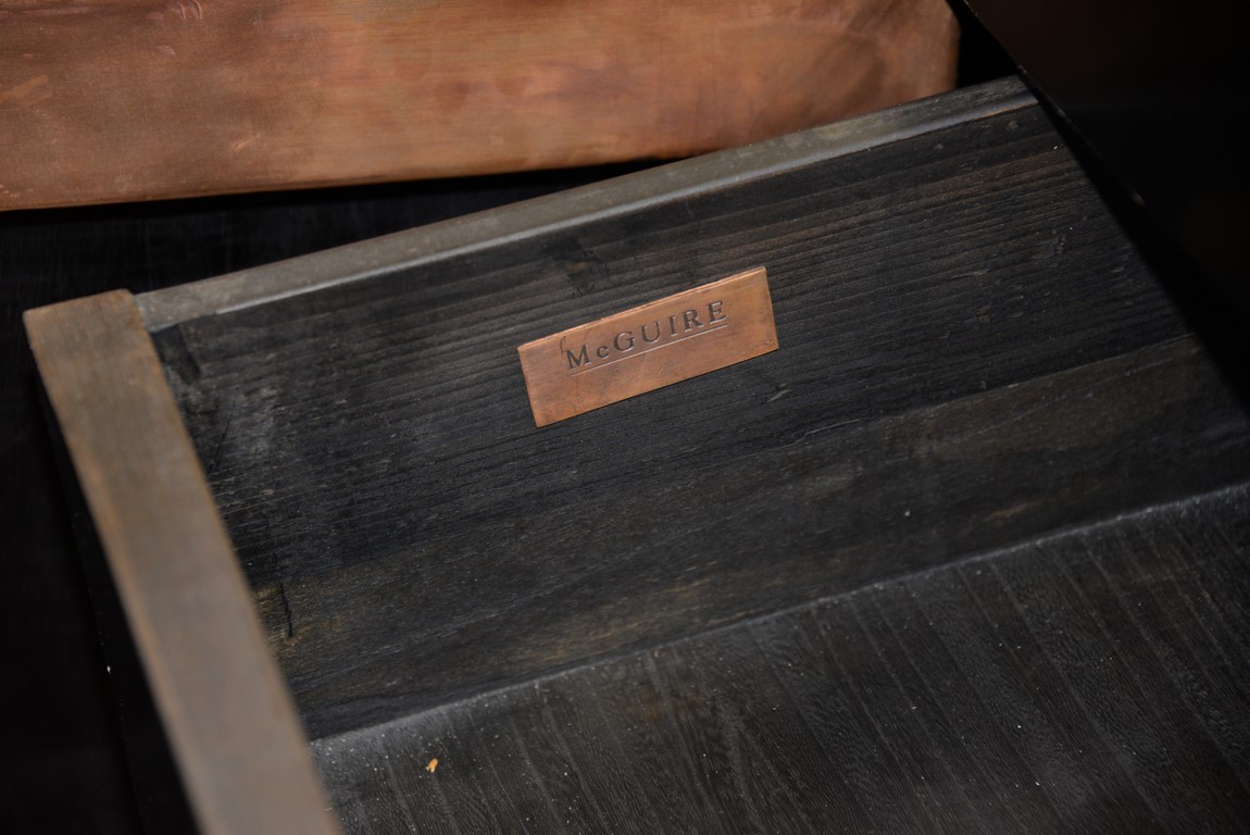 Lot 361: Maguire sideboard attributed to Bill Sofield, copper nail head doors with ebonized finish, four interior drawers in center with shel…