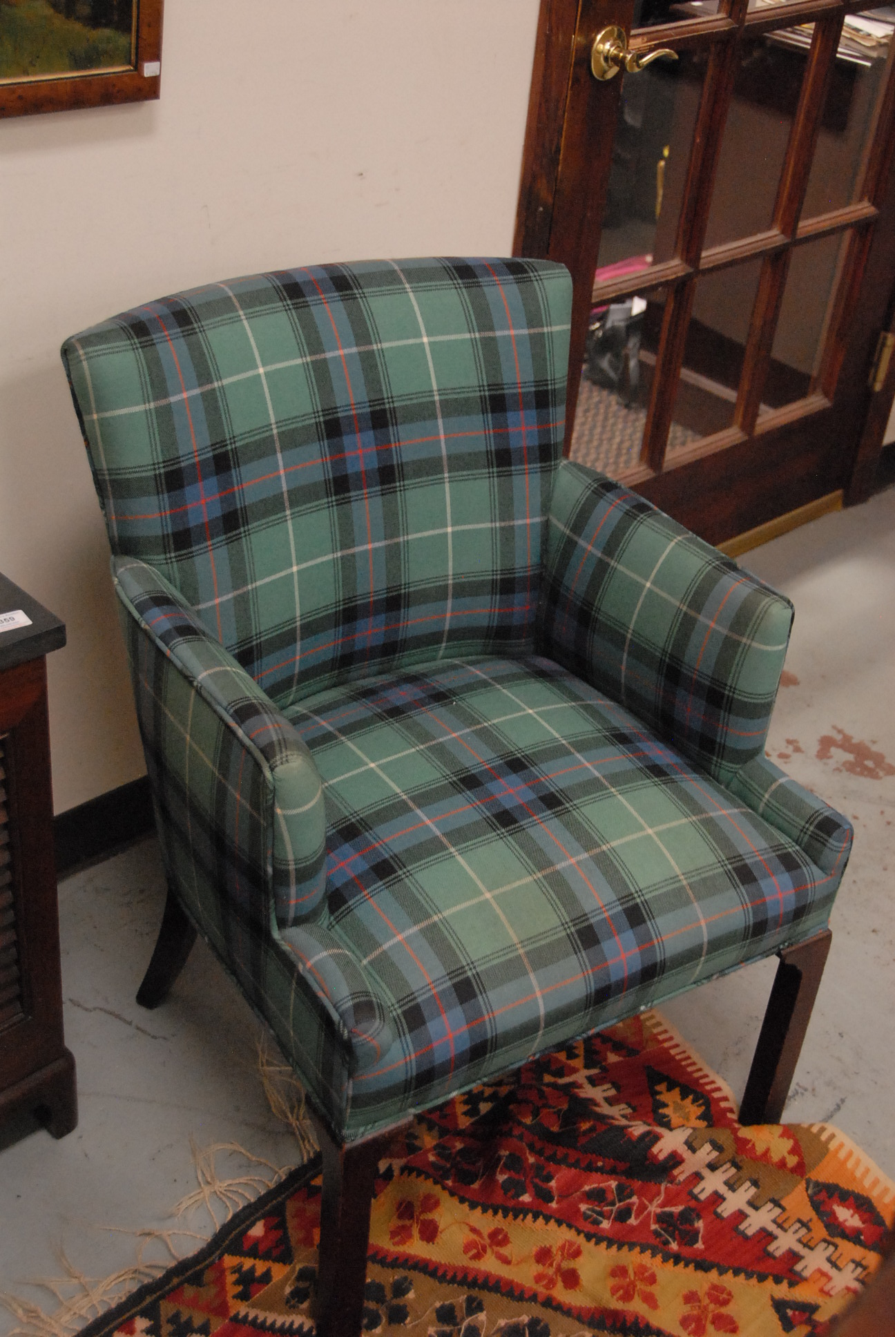 Two upholstered living room chairs, one is rocker.