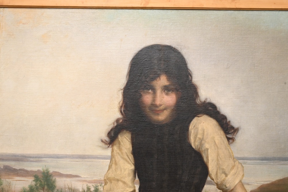 Etienne Adolphe Piot (1850 – 1910), young girl holding poppies, oil on canvas laid on panel, signed A. Piot lower right, 45 1/2″ x 35″. Provenance: George Walter Vincent Smith Museum, Springfield, Massachusetts, sold at auction to a private client.