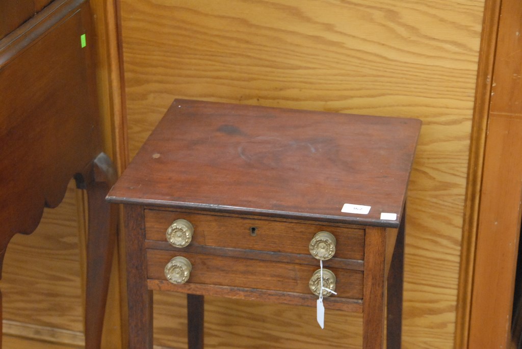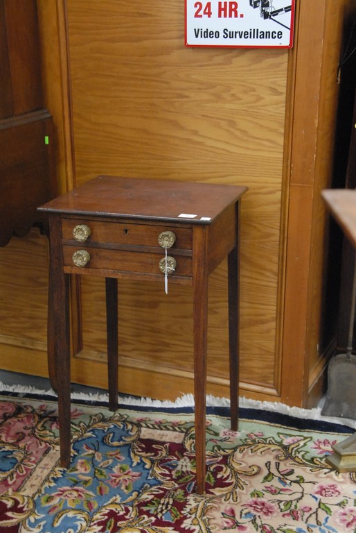 Federal mahogany two drawer stand on square tapered legs, circa 1800. ht. 29in.
