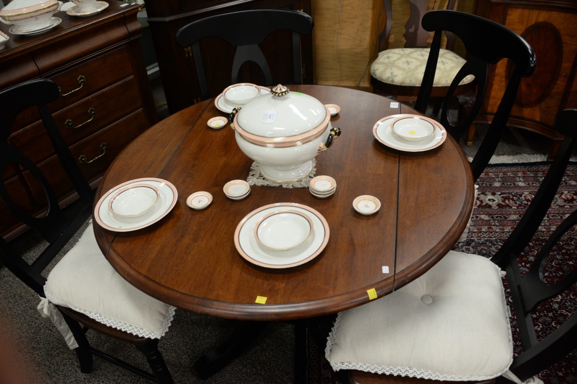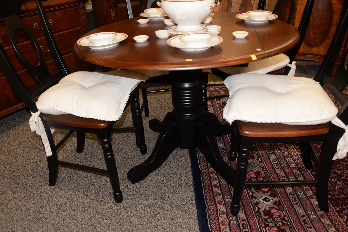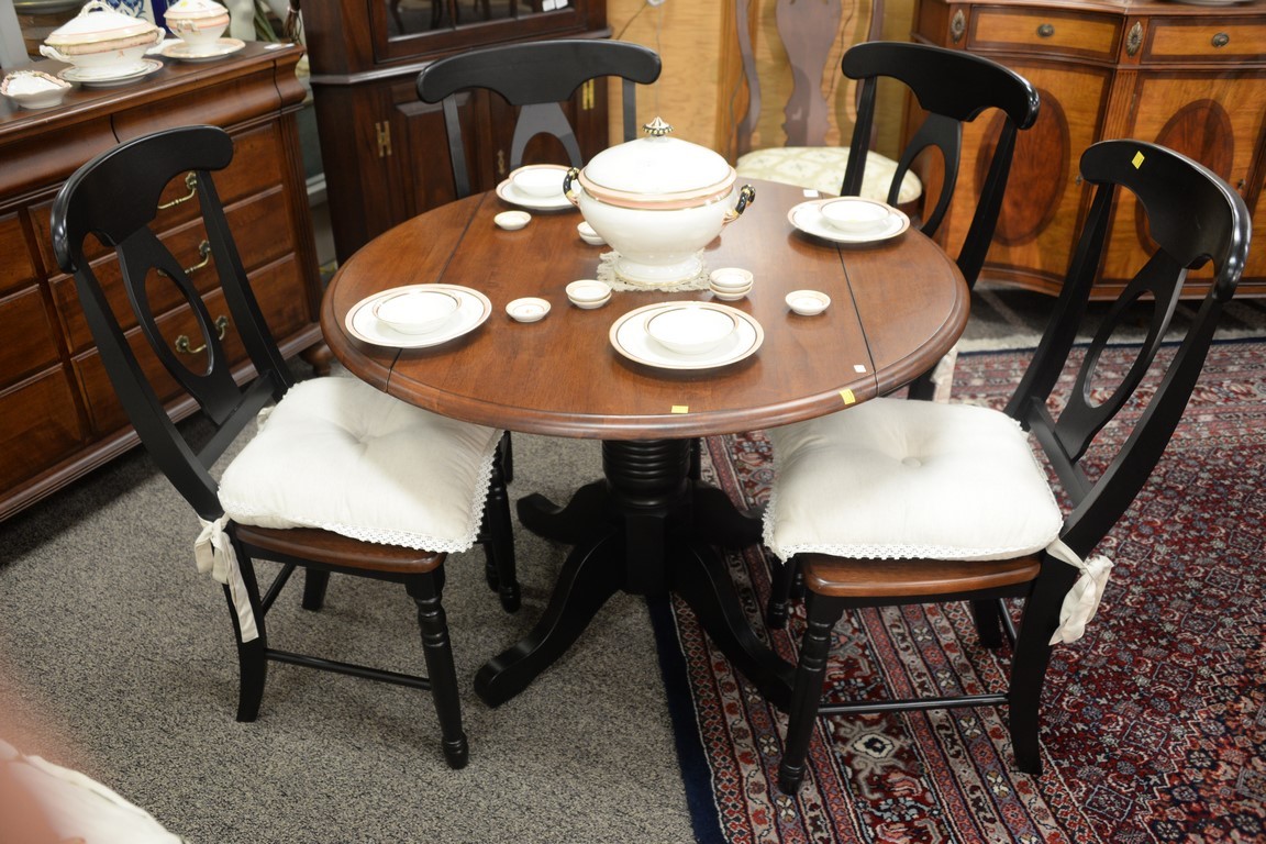 Five piece set with drop leaf table and four chairs. ht. 29in., top open: 42in.