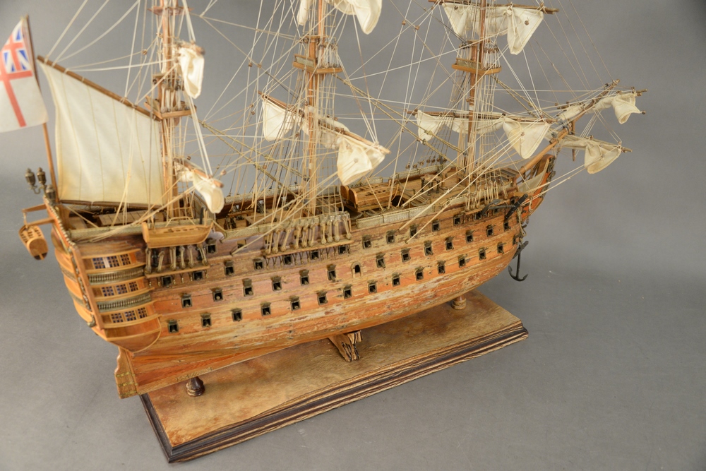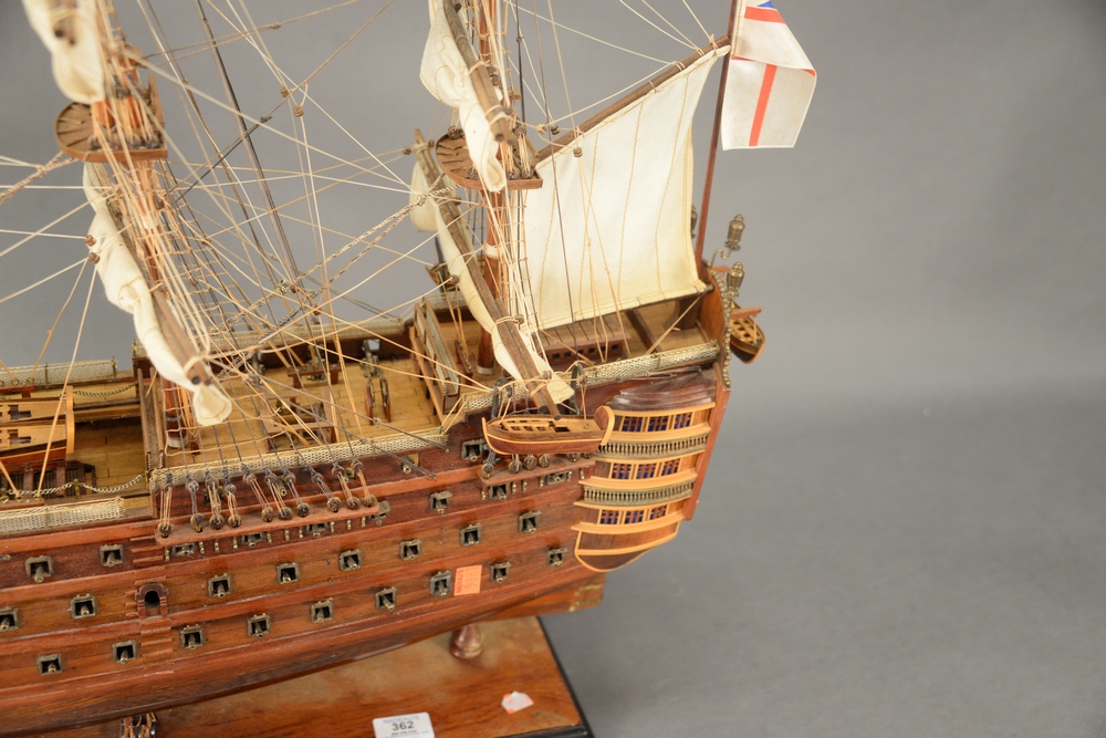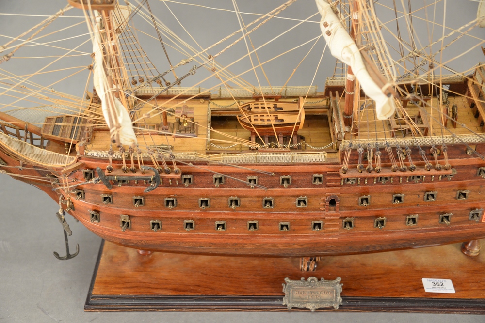 Lot 362: HMS Victory Ship Model, having 108 model guns, 1805, height 32 inches, length 37 inches, depth 8 inches.