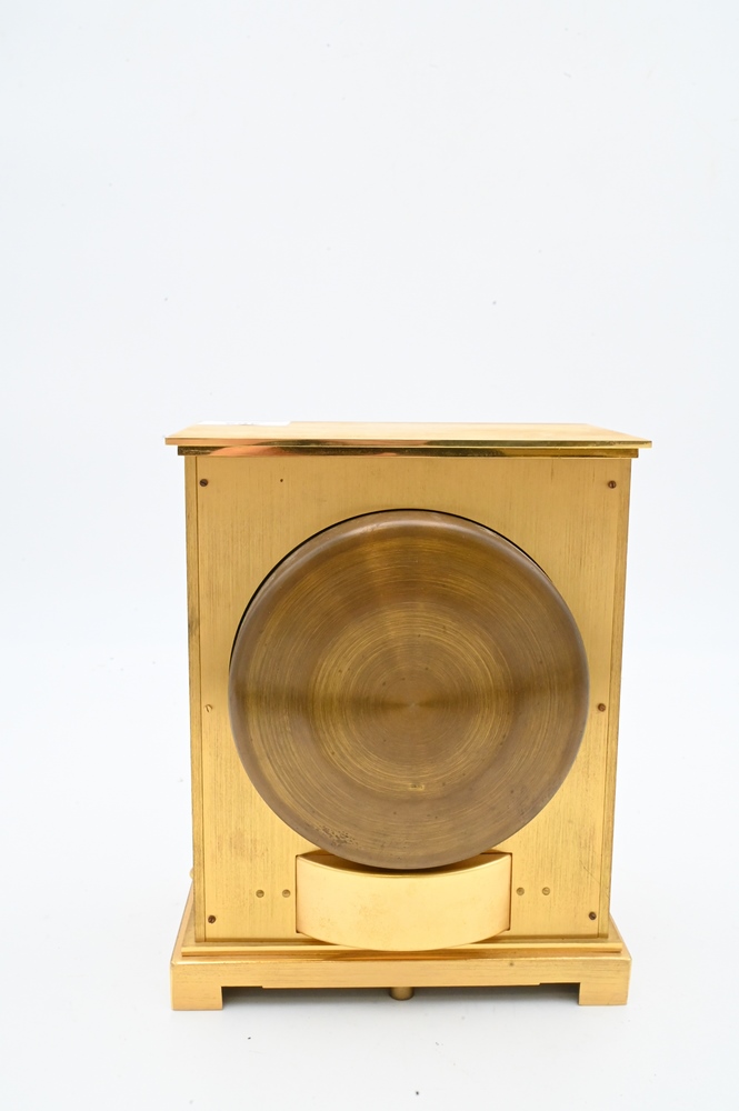 Lot 362: Jaeger LeCoultre Atmos Clock, embassy red, having faux marble panels, height 8 1/2 inches. Provenance: Collections of Norma Reilly, New Jersey.