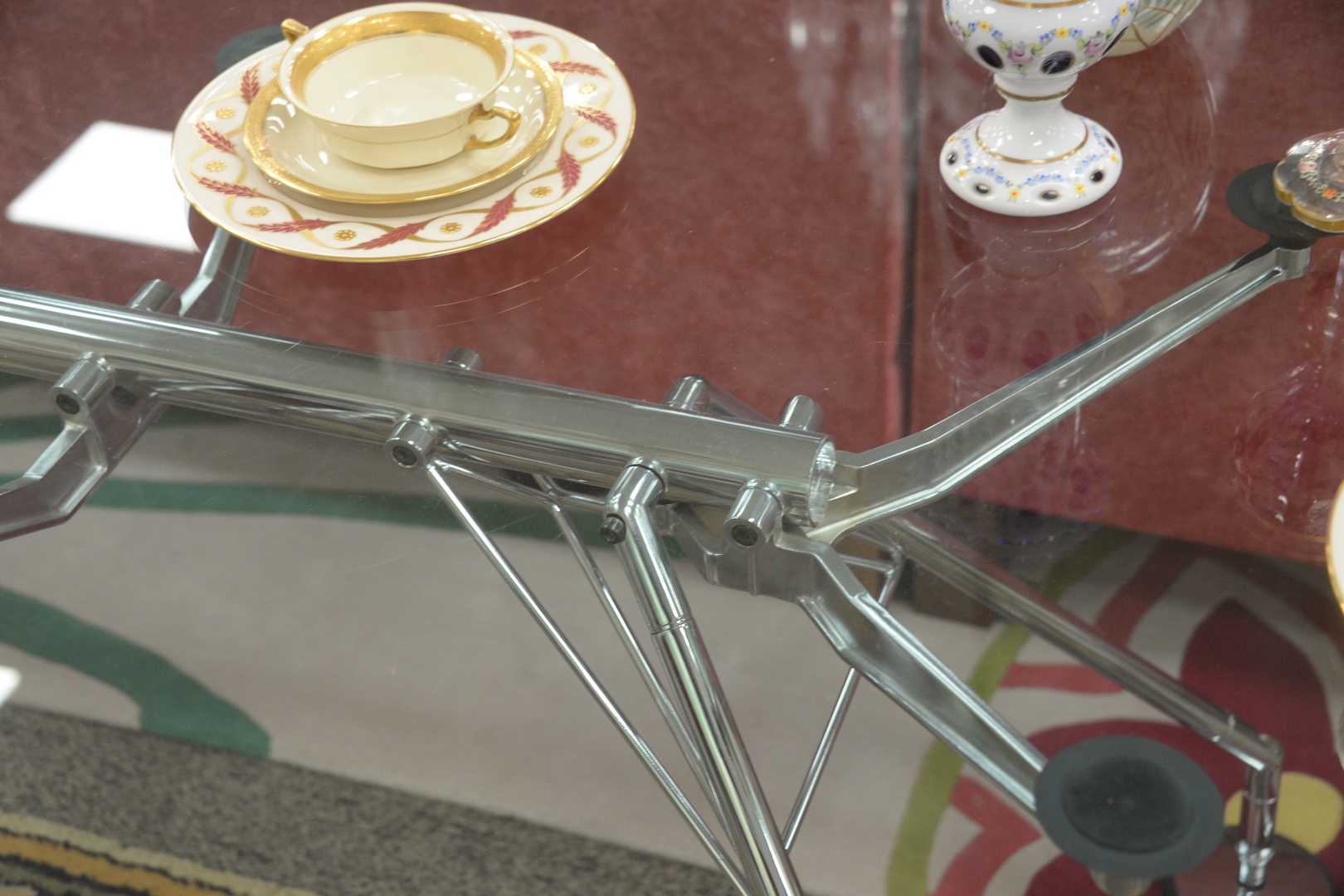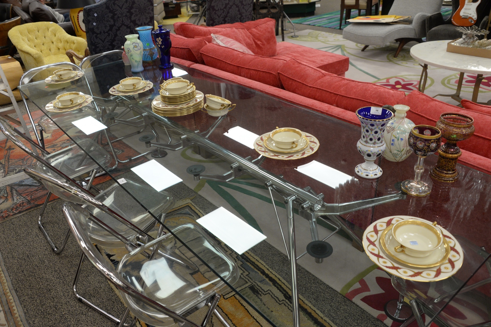 Lot 362: Lord Norman Foster Tecno Nomos Clear Glass Conference/Dining Table, with chrome base, height 28 1/2 inches, top 39″ x 110″.