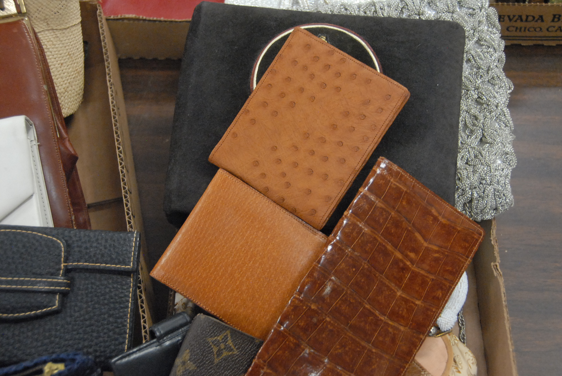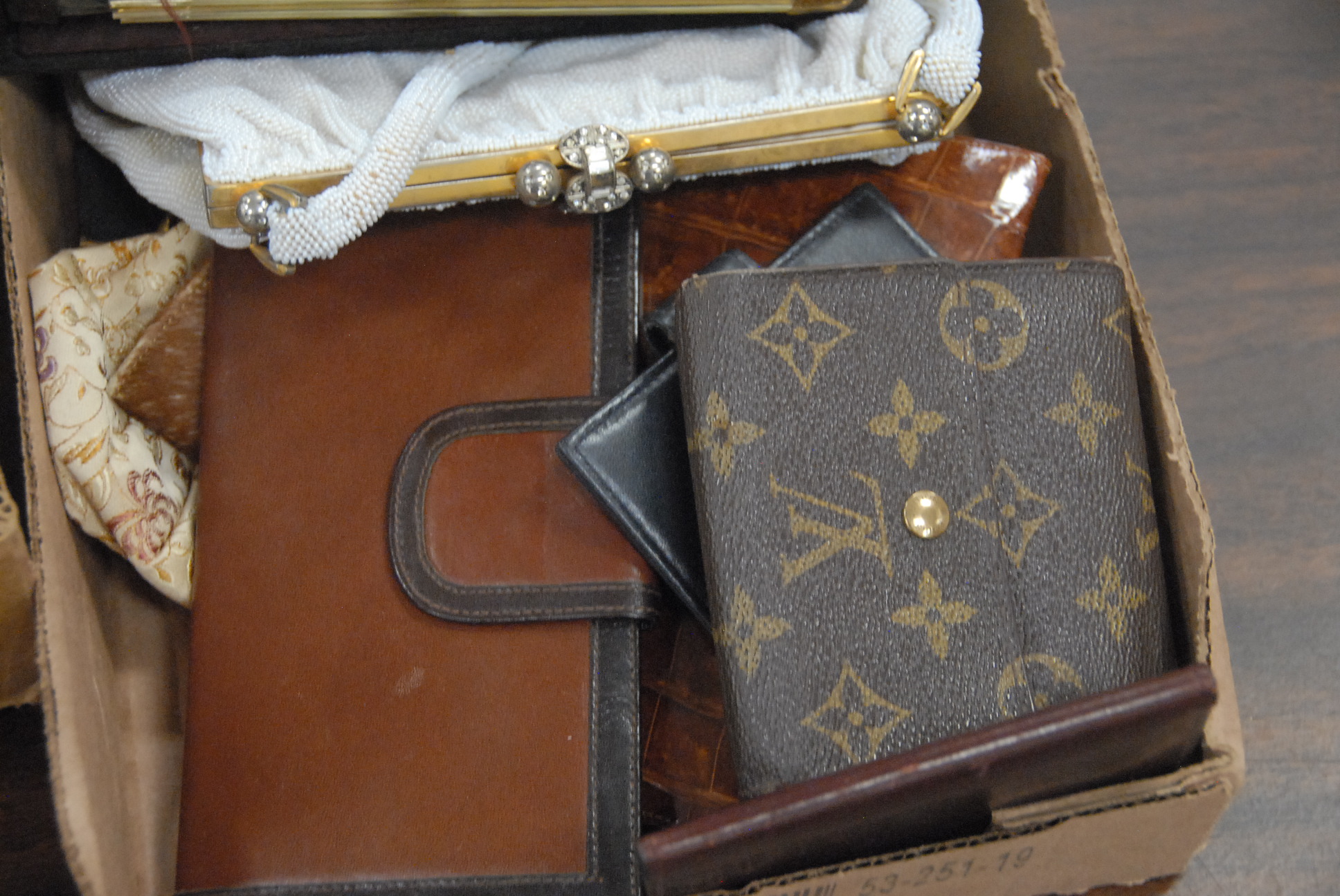 Lot 362: Three box lots of vintage pocket books and wallets including Louis Vuitton wallet and Alligator wallet.