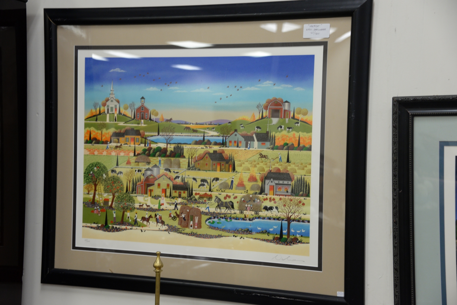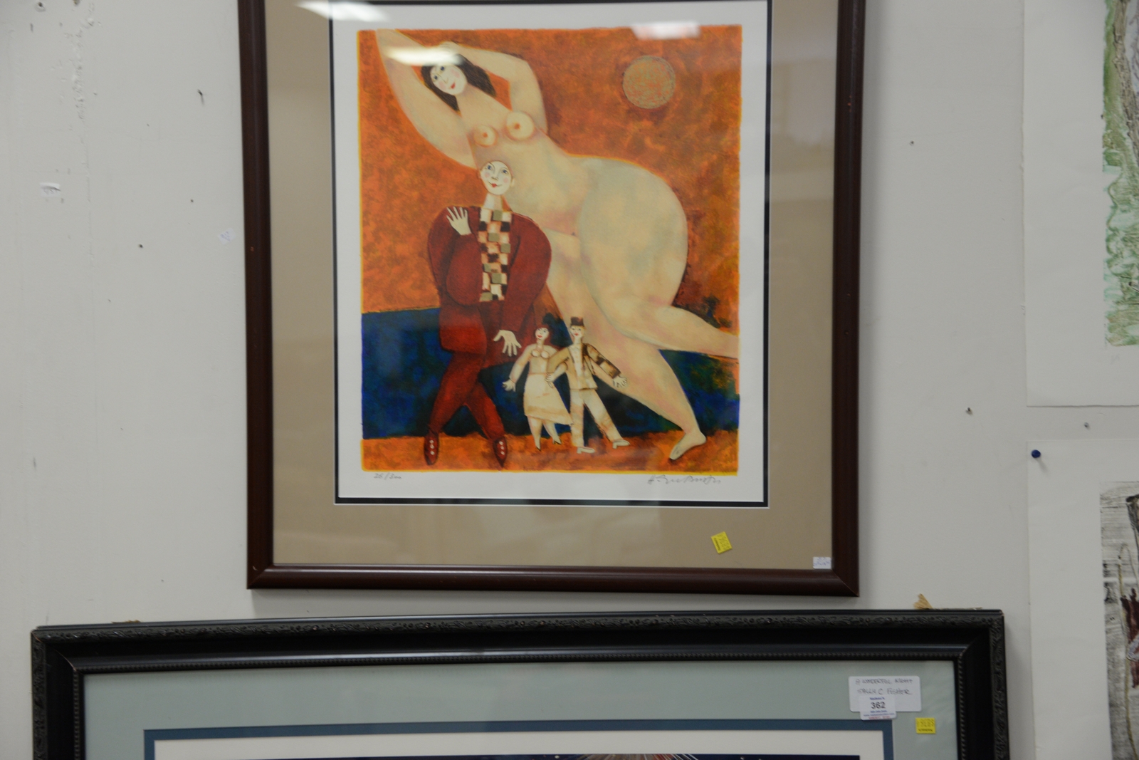 Lot 362: Three framed prints to include Harry Guttman serigraph pencil signed and numbered 26/300 22 x 19 and two Sally Fisher colored pr…