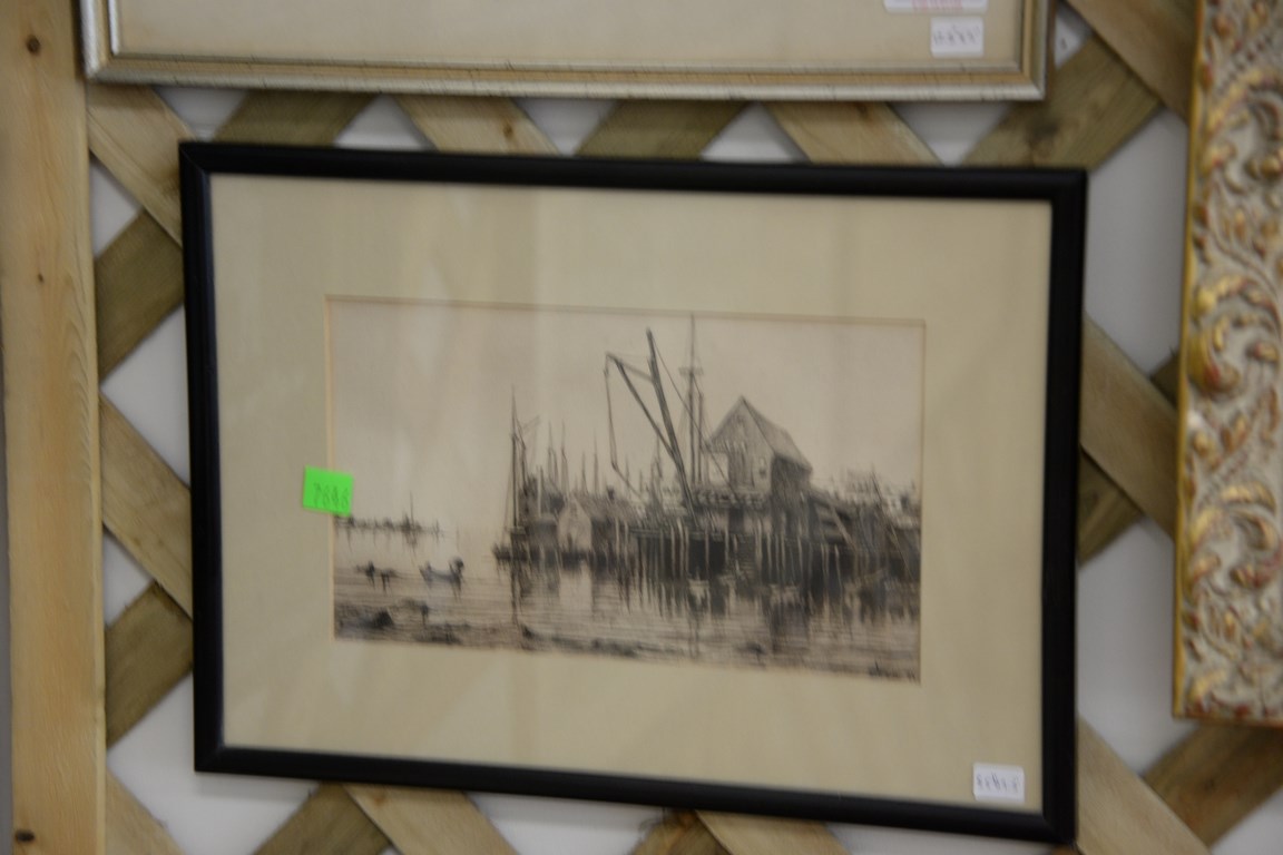 Lot 362: Two etchings including Charles Adam Platt 1861-1933 Spars marina marked lower right C.A. Platt 81 and Rosamond Niles 1881-1960…