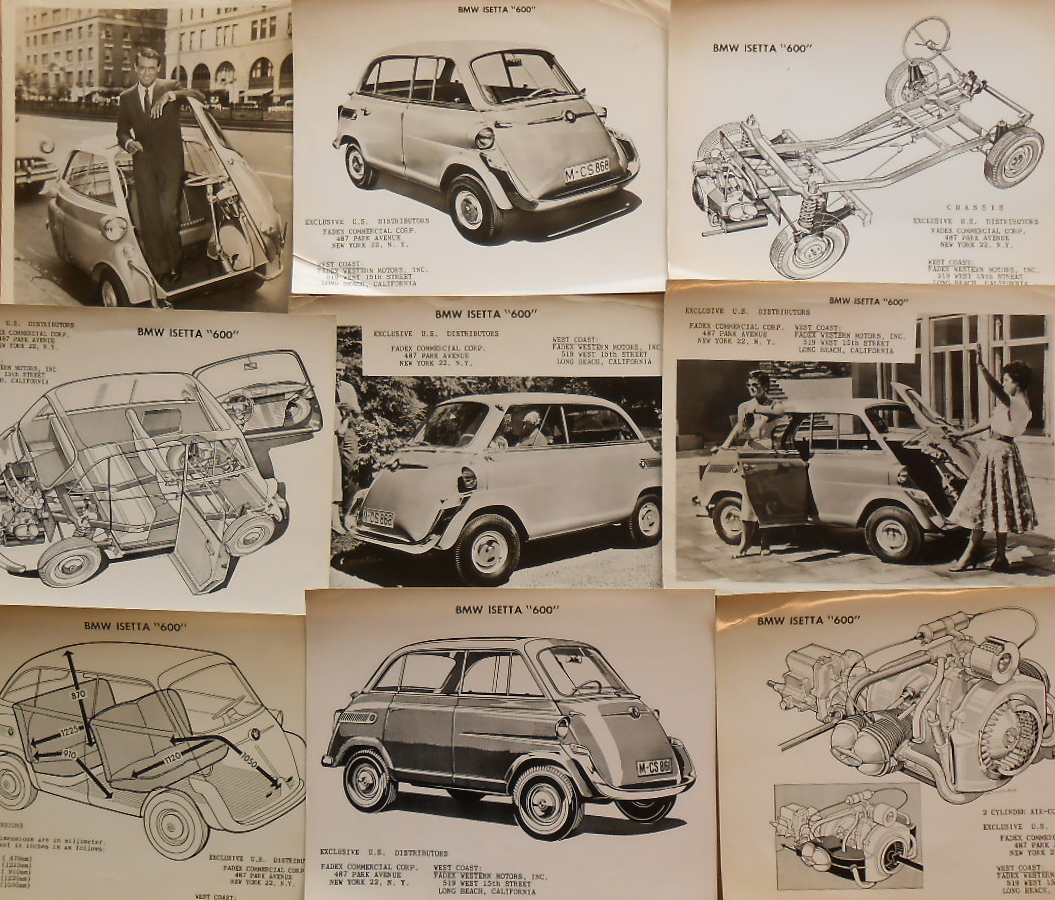 14 brochures – Fiat, Volvo, Tempo, Borgward, Simca, Citroen, Datsun Honda & nine Isetta factory photos