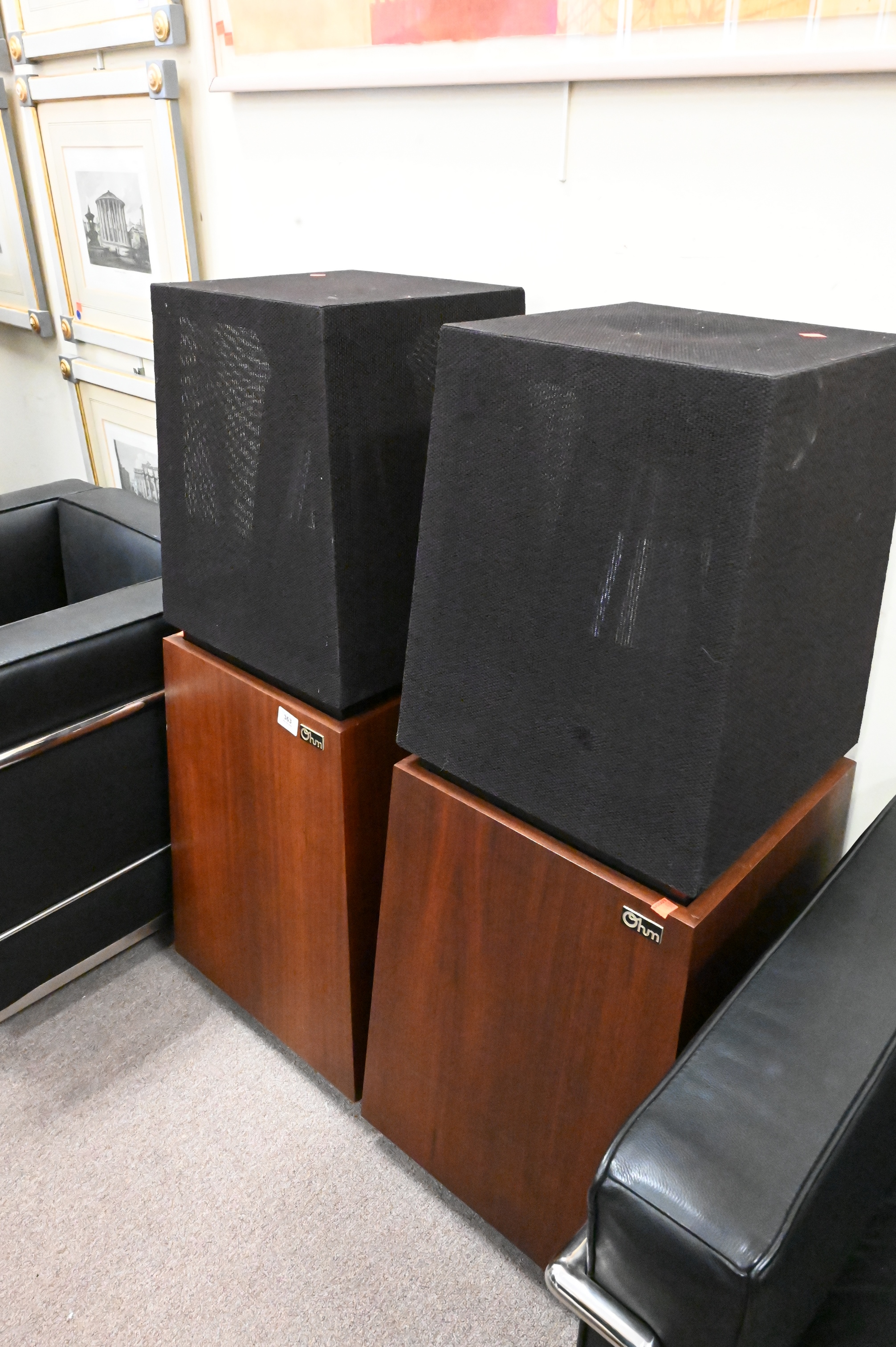 Lot 363: A Pair of Ohm Walsh Speakers on Wood Cabinets