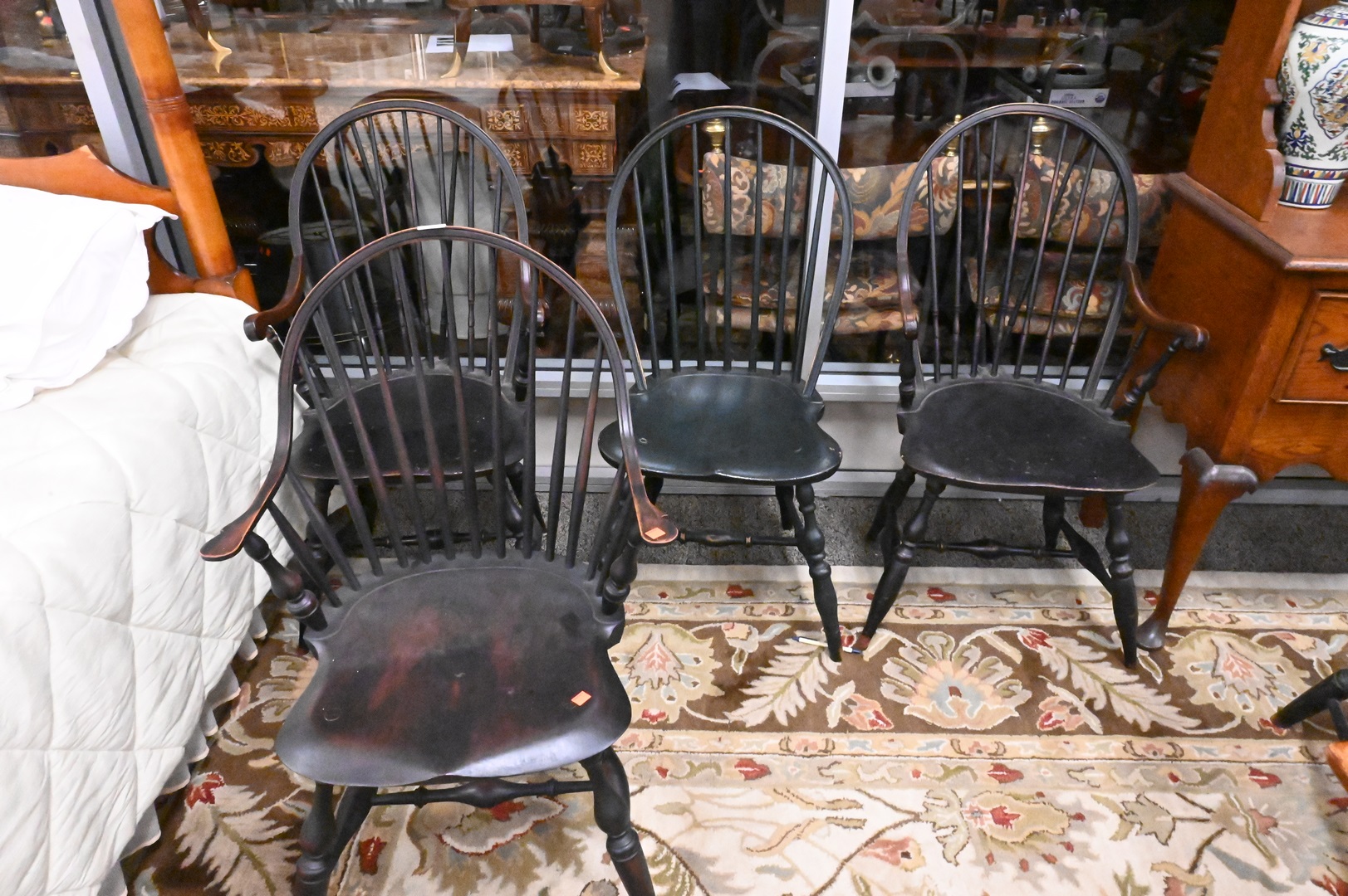Assembled Set of Eight Windsor Style Chairs, to include four armchairs along with four side chairs. Provenance: Estate of Peter Tillou, Litchfield, Connecticut.