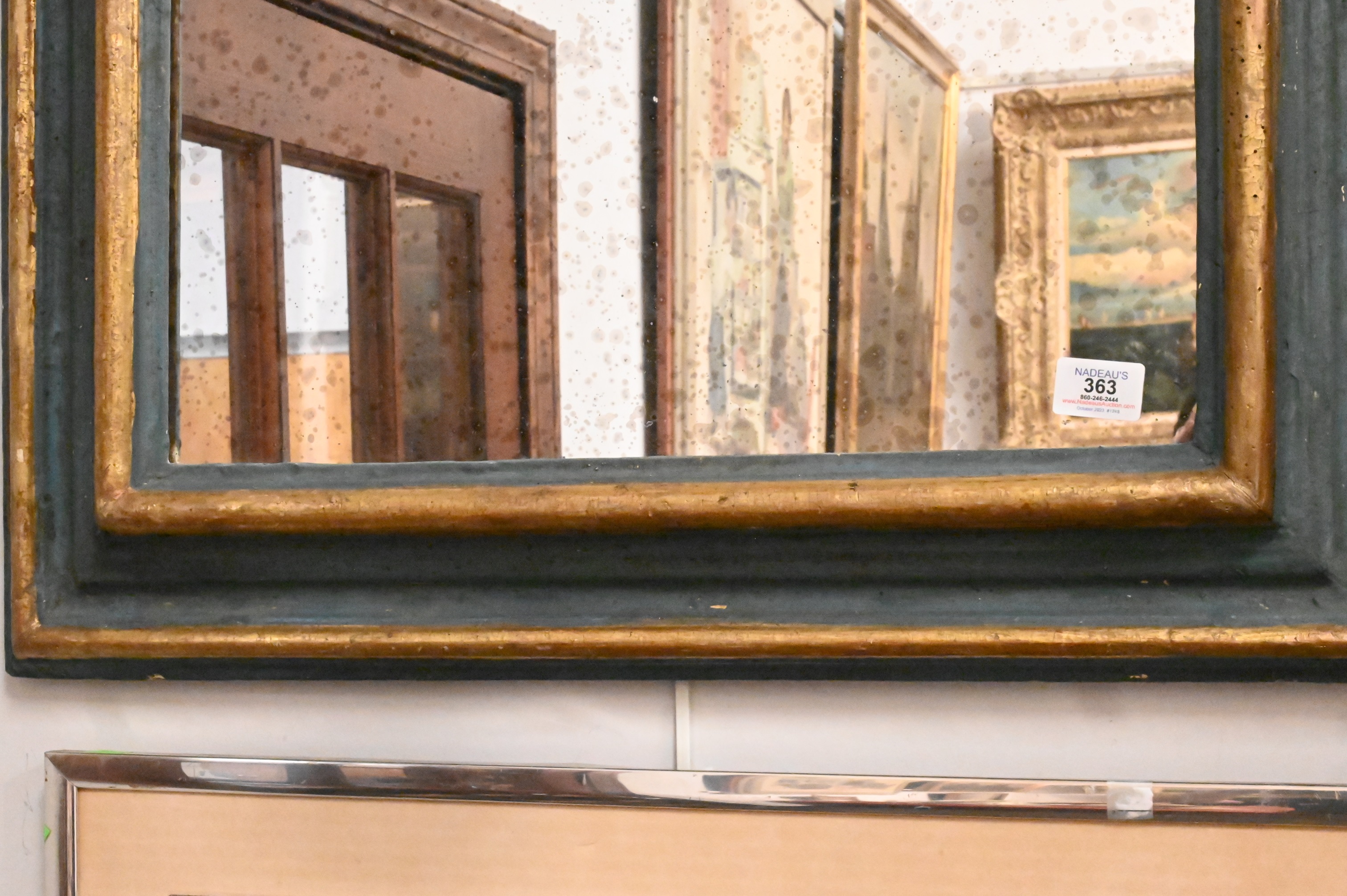 Lot 363: Blue Painted Mirror with Parcel Gilt Borders
