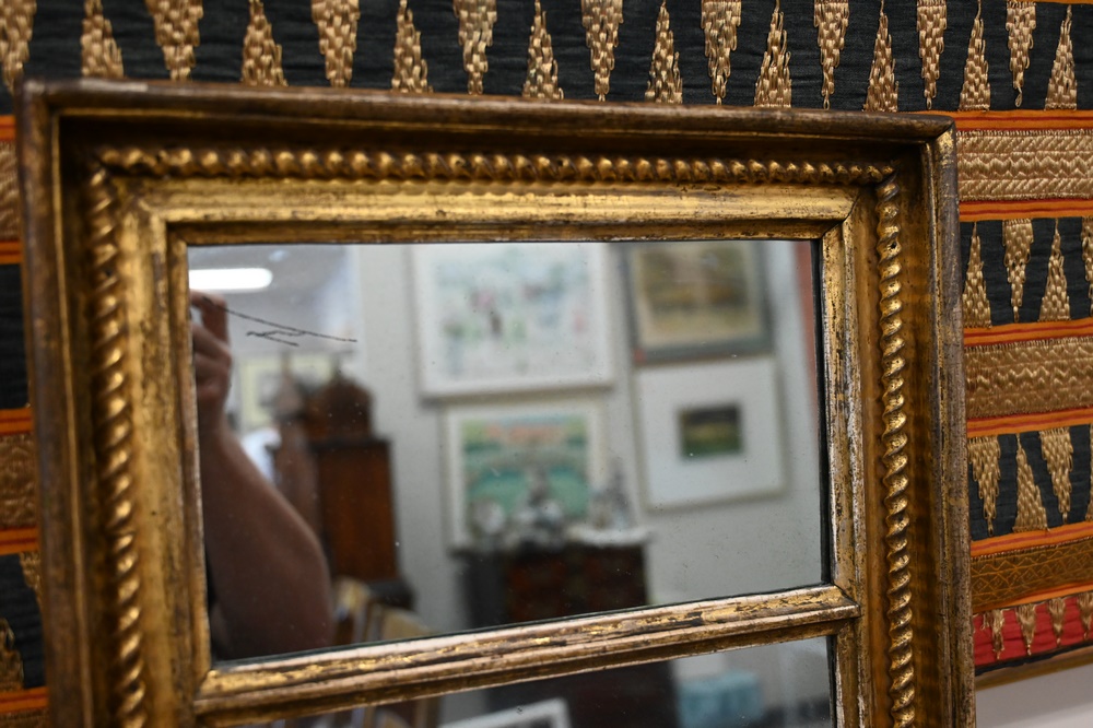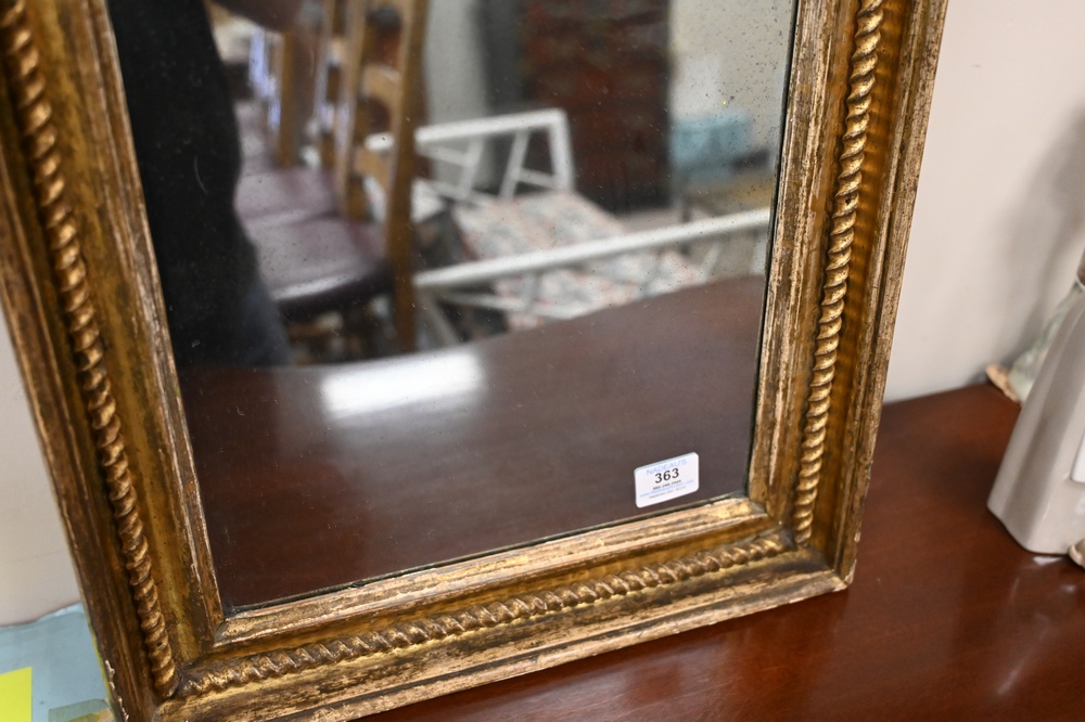 Lot 363: Federal Gilt Two Part Deep Mirror, with inset twisted column, circa 1830, height 29 1/2 inches, width 16 inches.