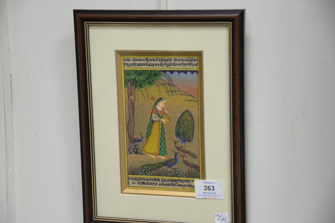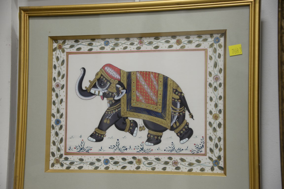 Lot 363: Four framed Middle Eastern paintings, two of woman and two of elephants. 2 7 3/4 x 4 3/4 and 2 10 x 13