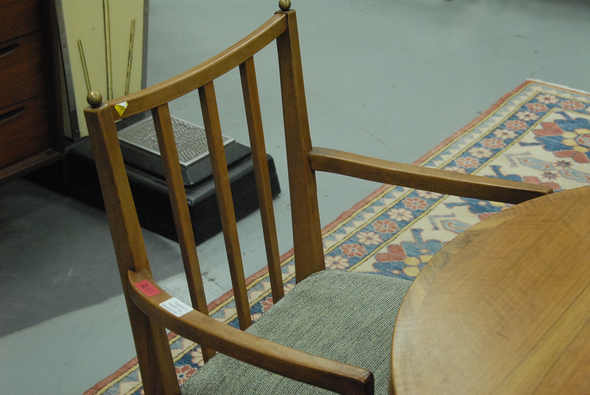 Lot 364: J. Mortensen Heltborg Denmark dining set oval table and six chairs with two 15 leaves, 48 x 74, opens to 114.
