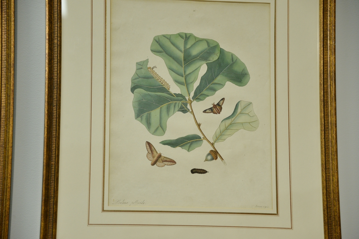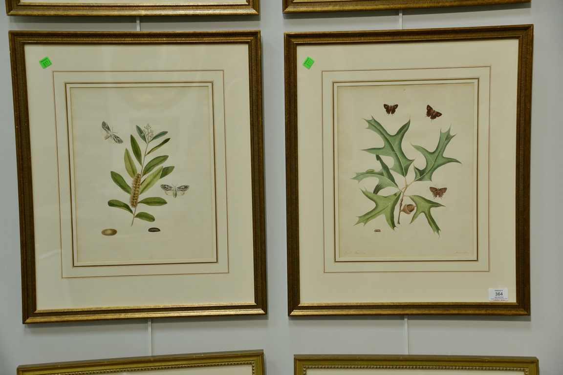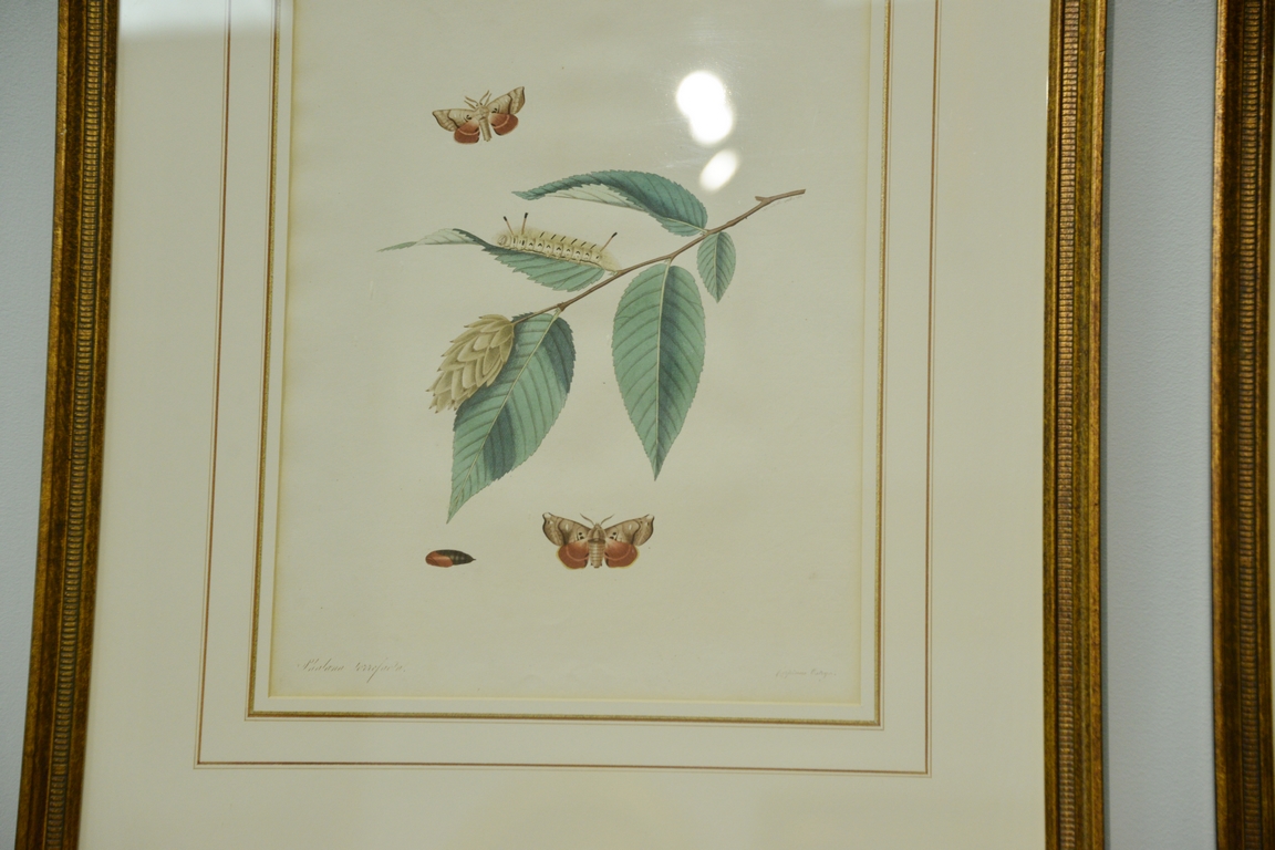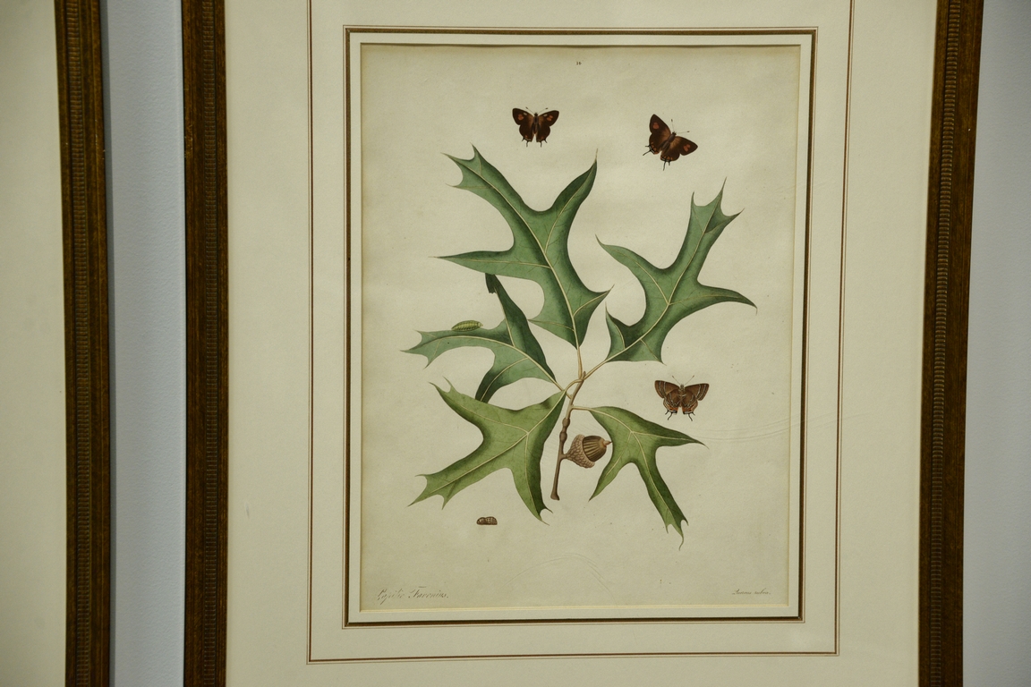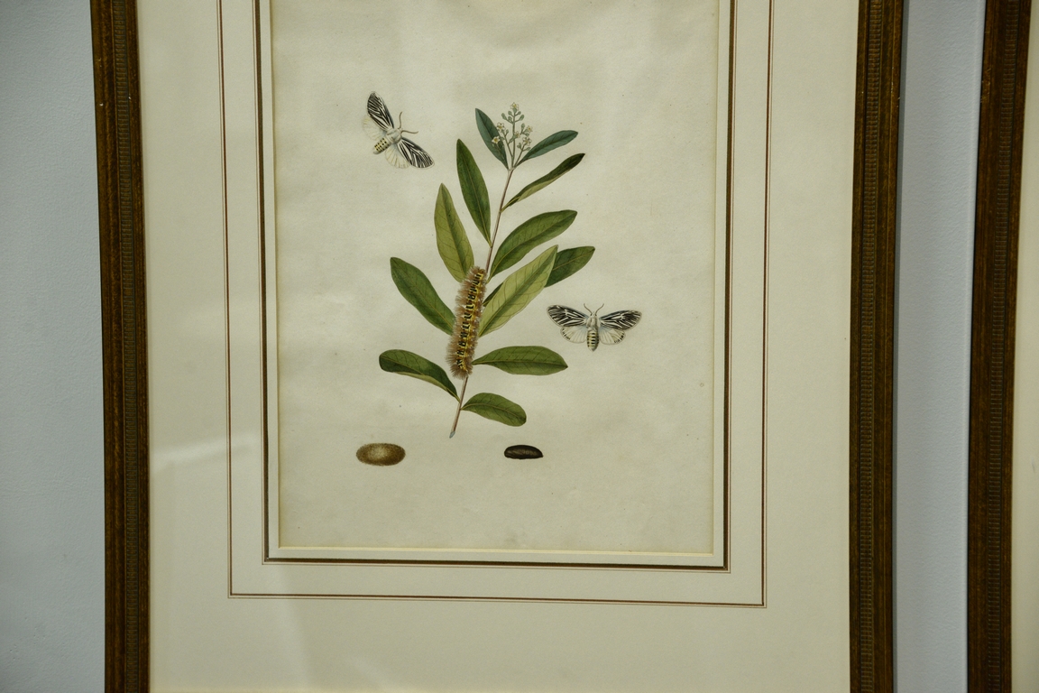 John Abbot 1751-1839 four hand colored aquatint engravings including Chestnut-Coloured Underwing Moth Phalaena Torre Facta plate #76, Black Streaked Ermine Moth Phalaena Echo plate #68, Transparent-Winged White-Spot Moth Phalaena Pellucida plate #58, and American Brown Hair-Streak Butterfly Papilio Favonius plate #14, published by James Edward Smith, sight size each: 14 1/4 x 11 Provenance: Property from Credit Suisse’s Americana Collection
