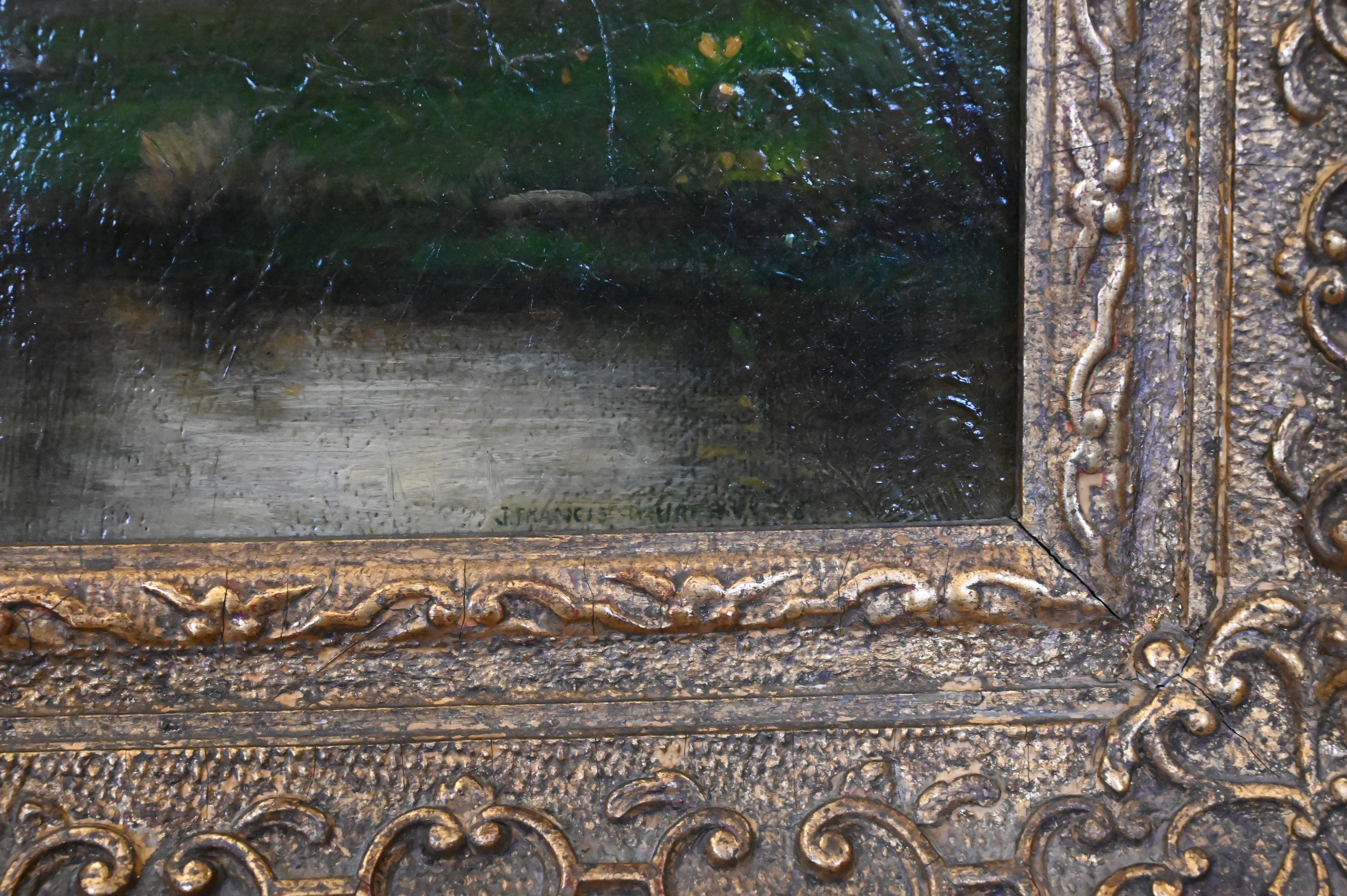 Presents well overall. varnish, inpainting to trees, and sky. craquelure.