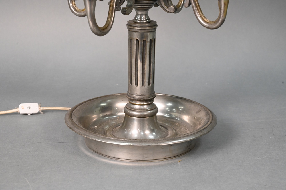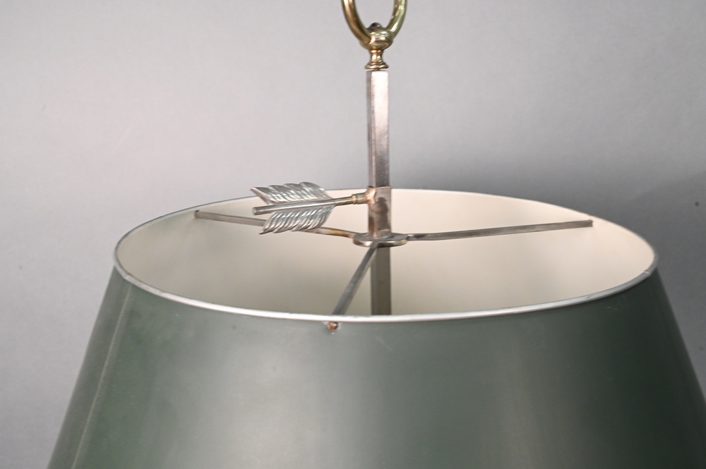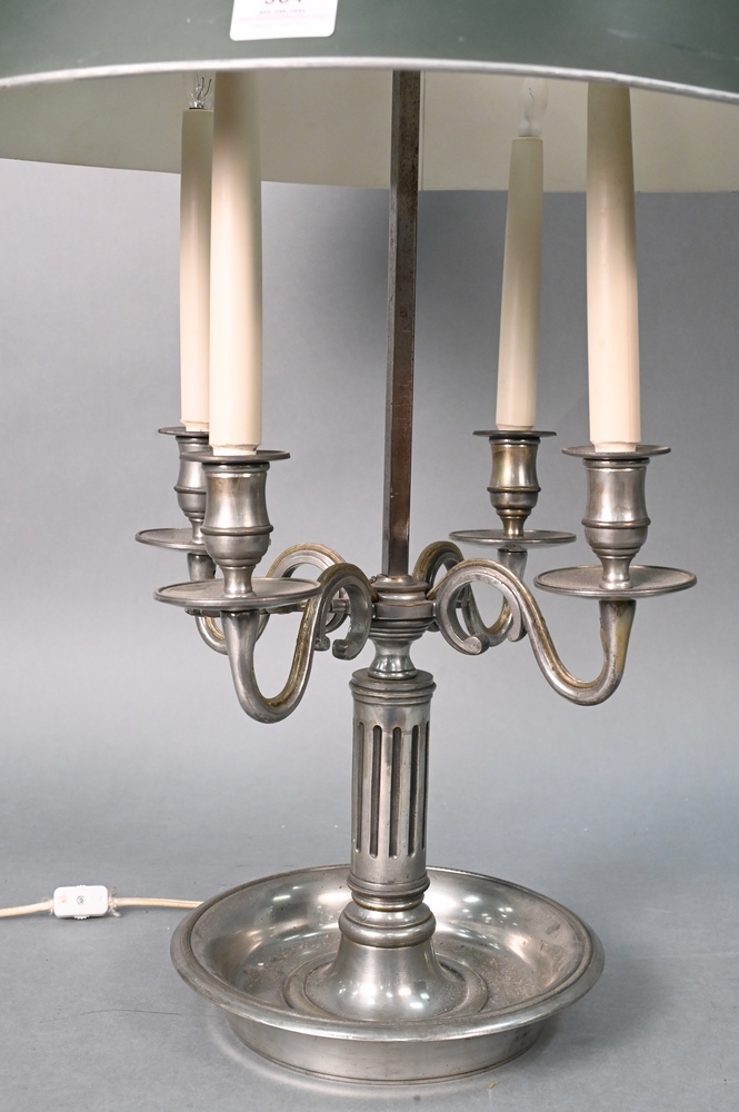 Lot 364: Large Bouillotte Silvered Table Lamp, having four arms with adjustable green tole shade.