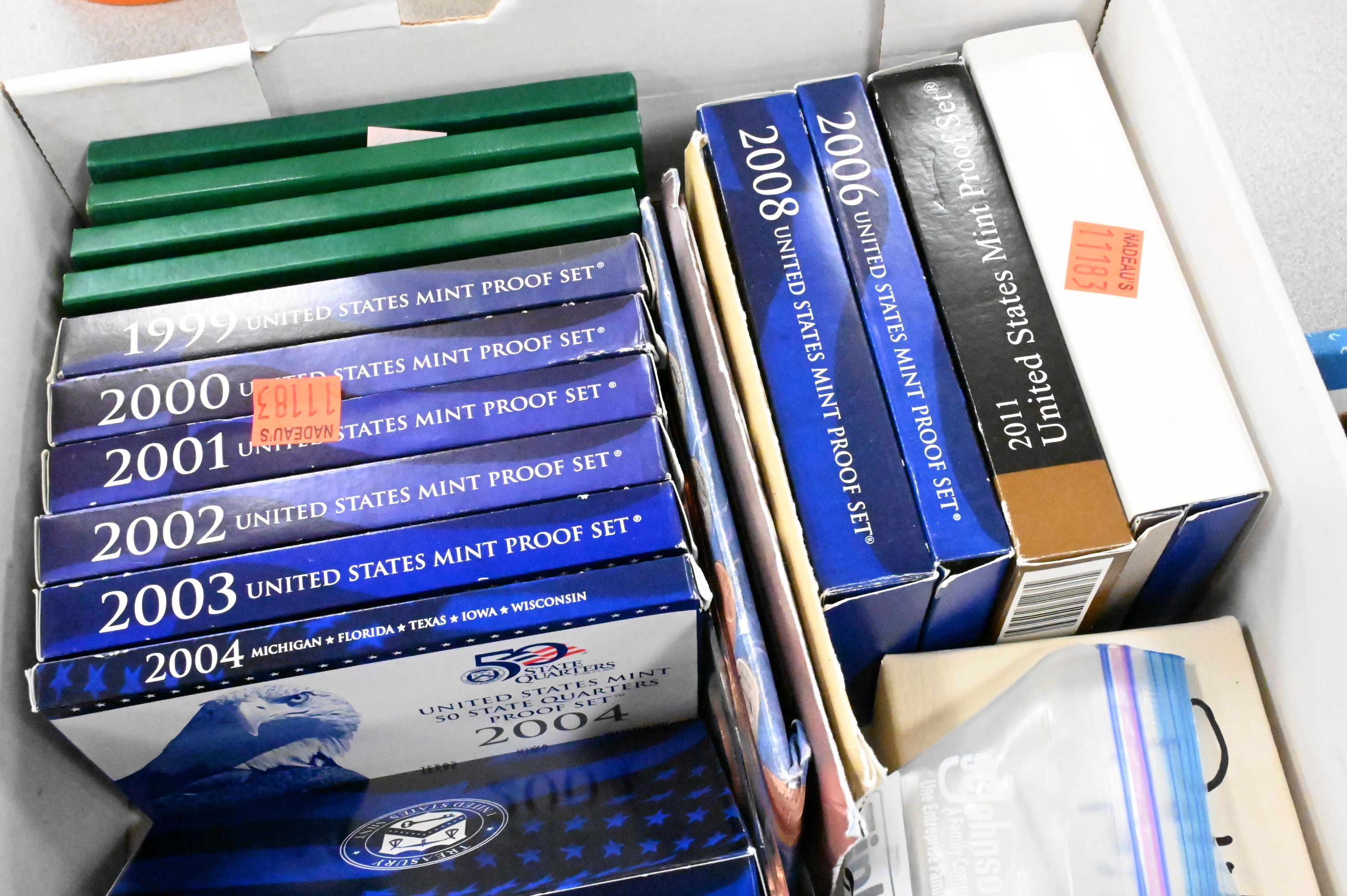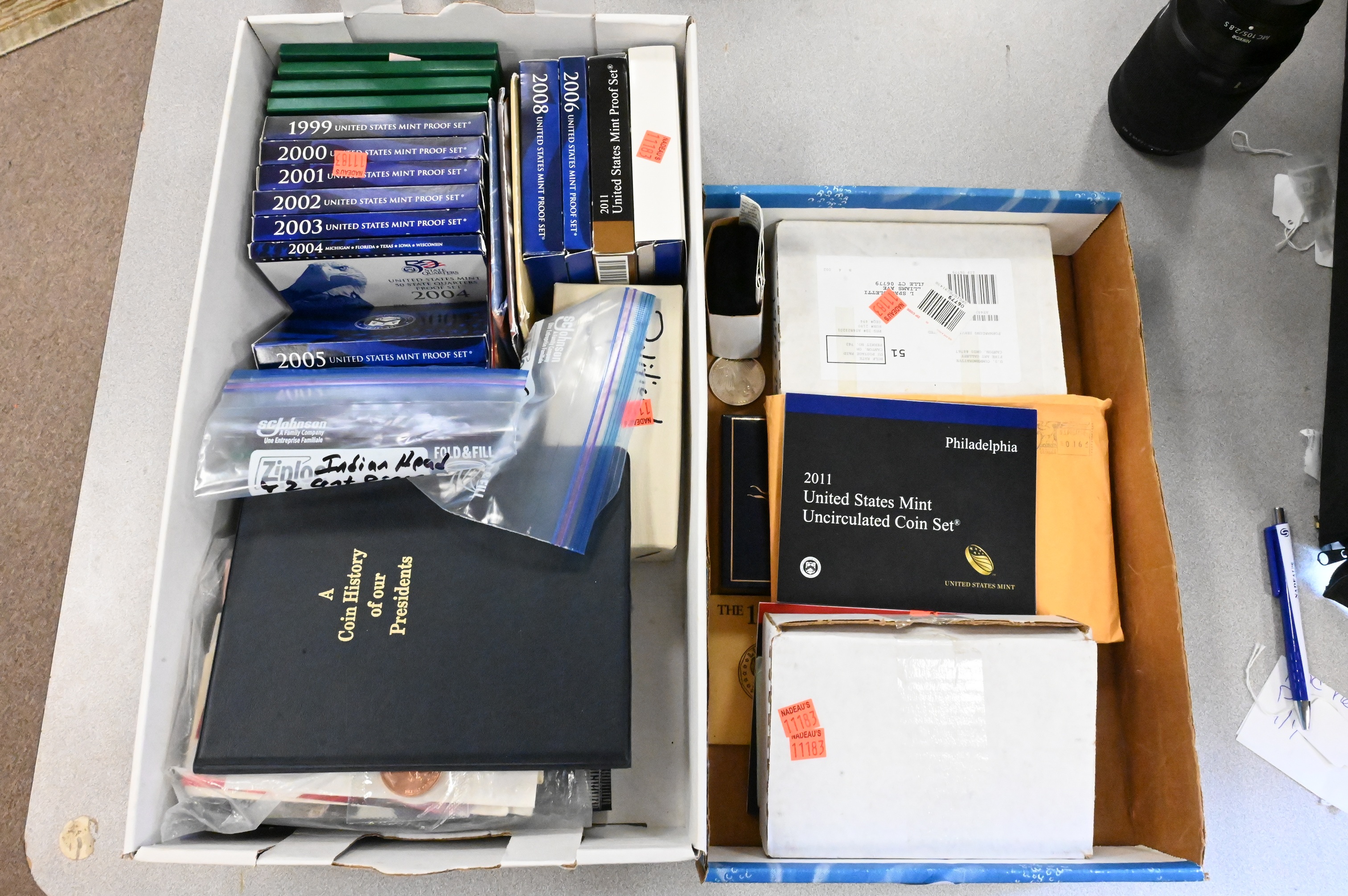 to include 23 mint sets, several coin albums, Indian Head cents, steel cents, buffalo nickels, and other coin sets, along with some political buttons