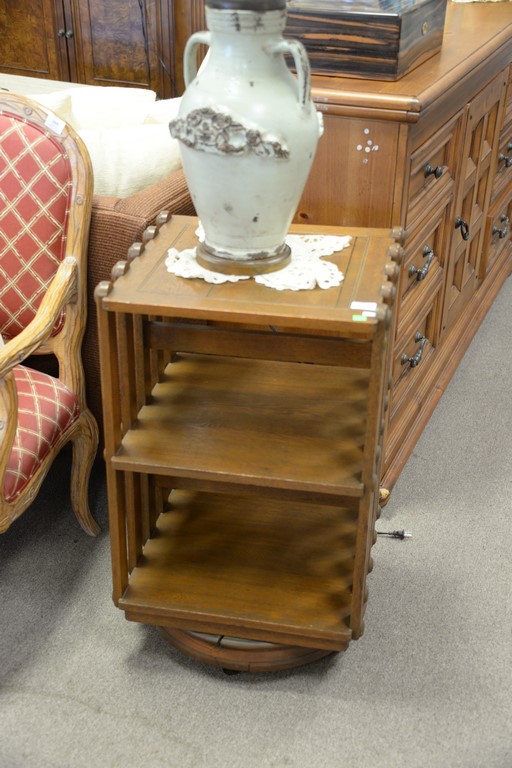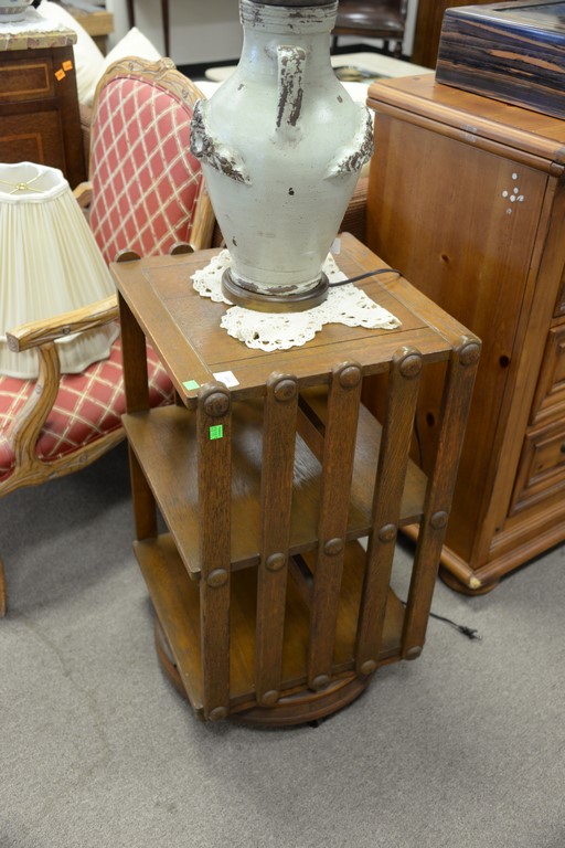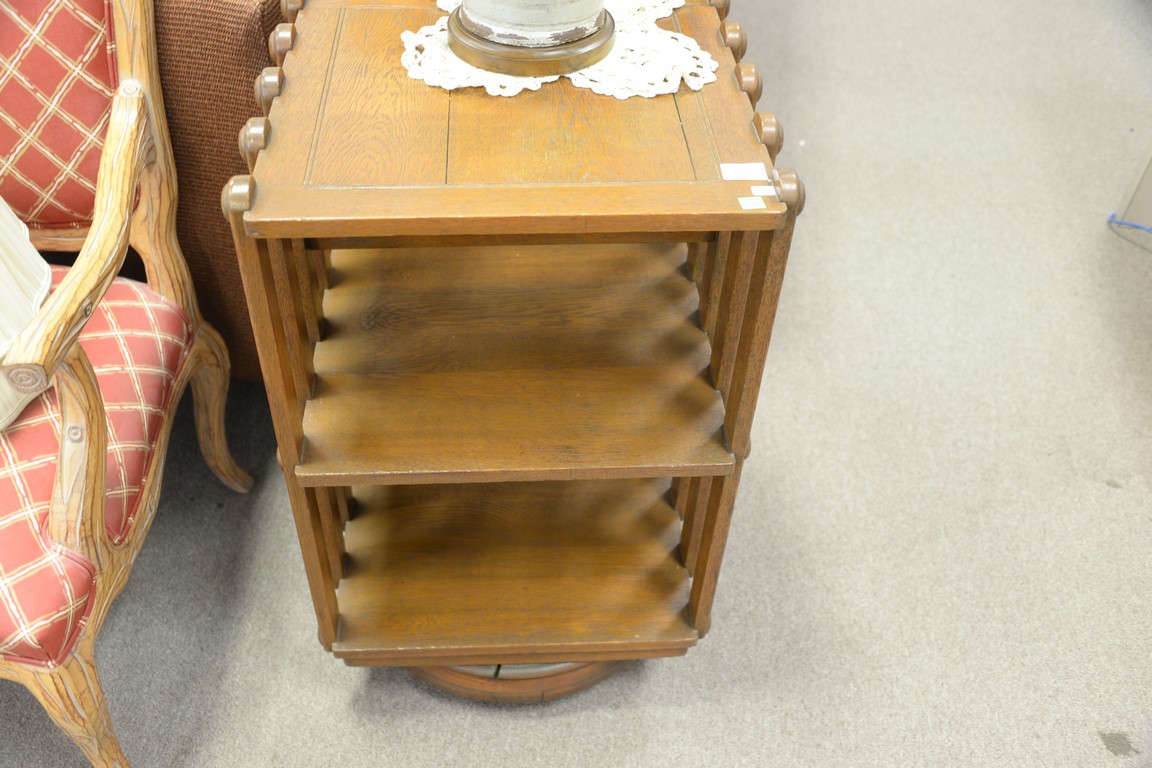 Oak revolving bookcase. ht. 31in., top: 17 1/2 x 17 1/2