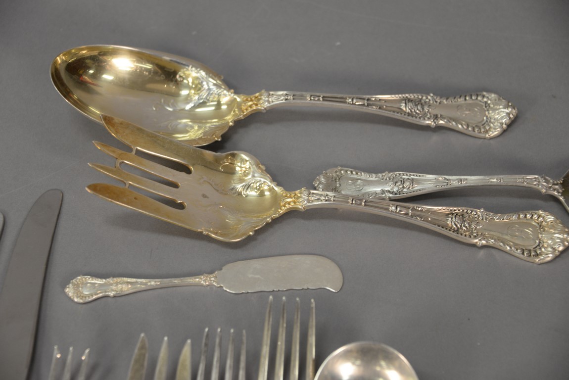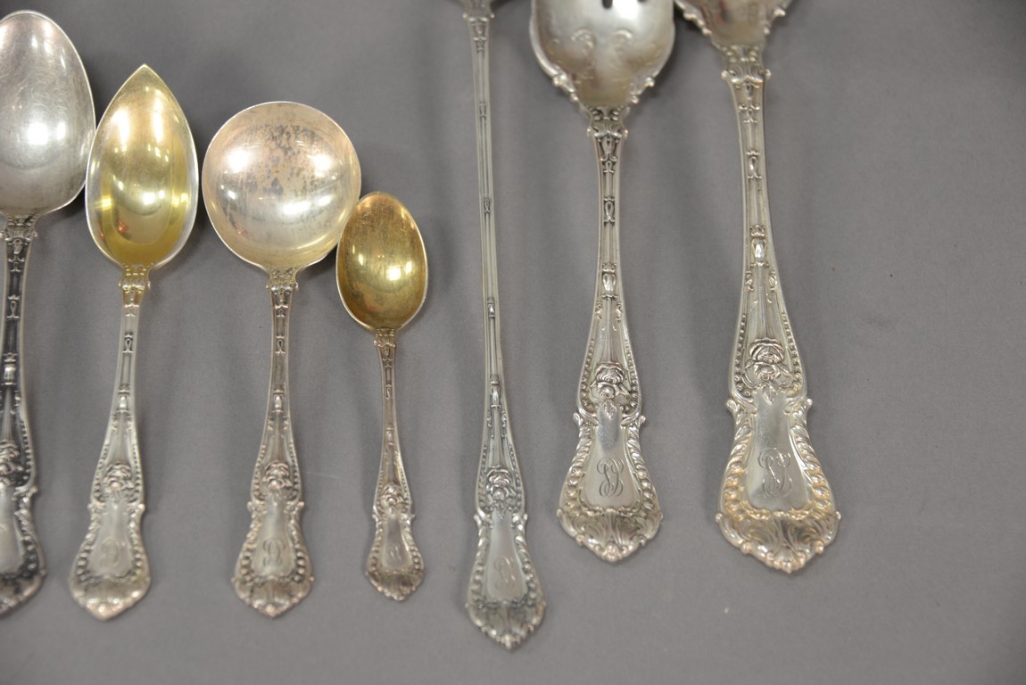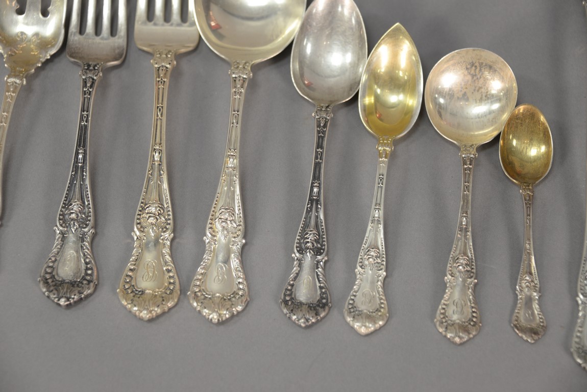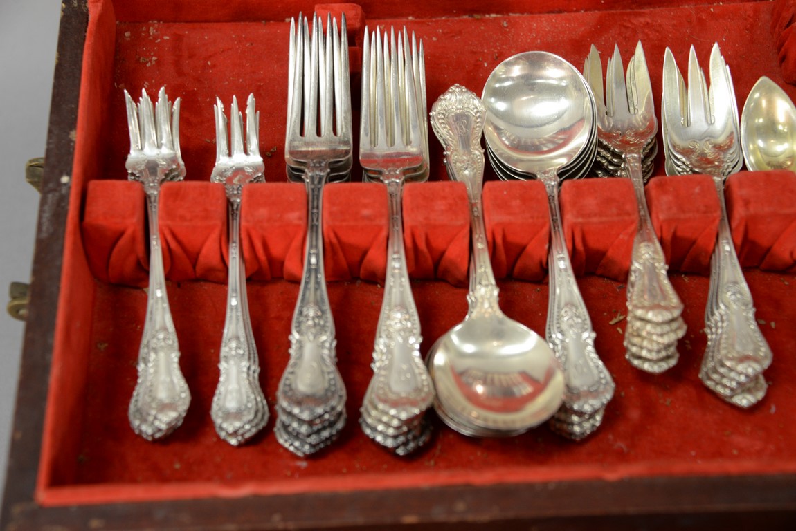 Lot 364: Whiting sterling silver flatware set including 12 dinner forks, 12 lunch forks, 12 dessert forks, 12