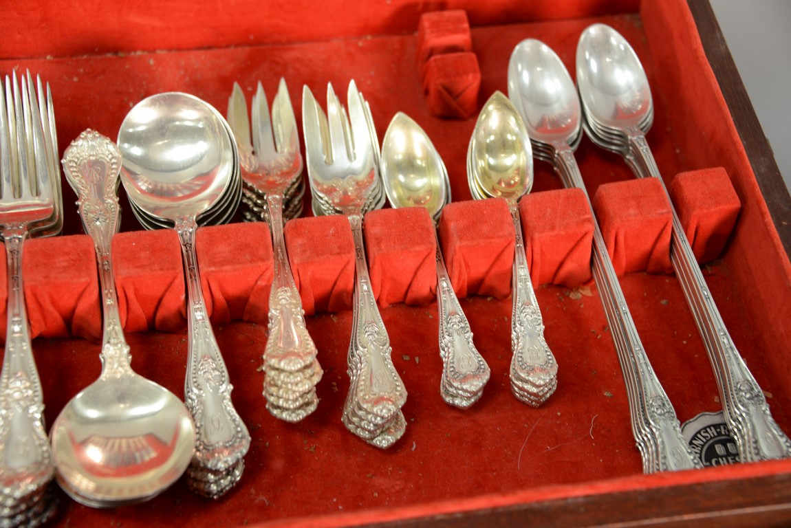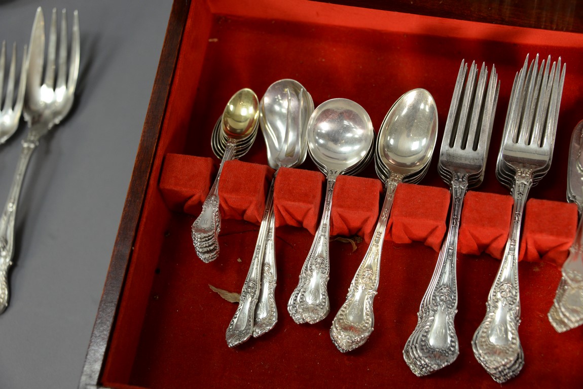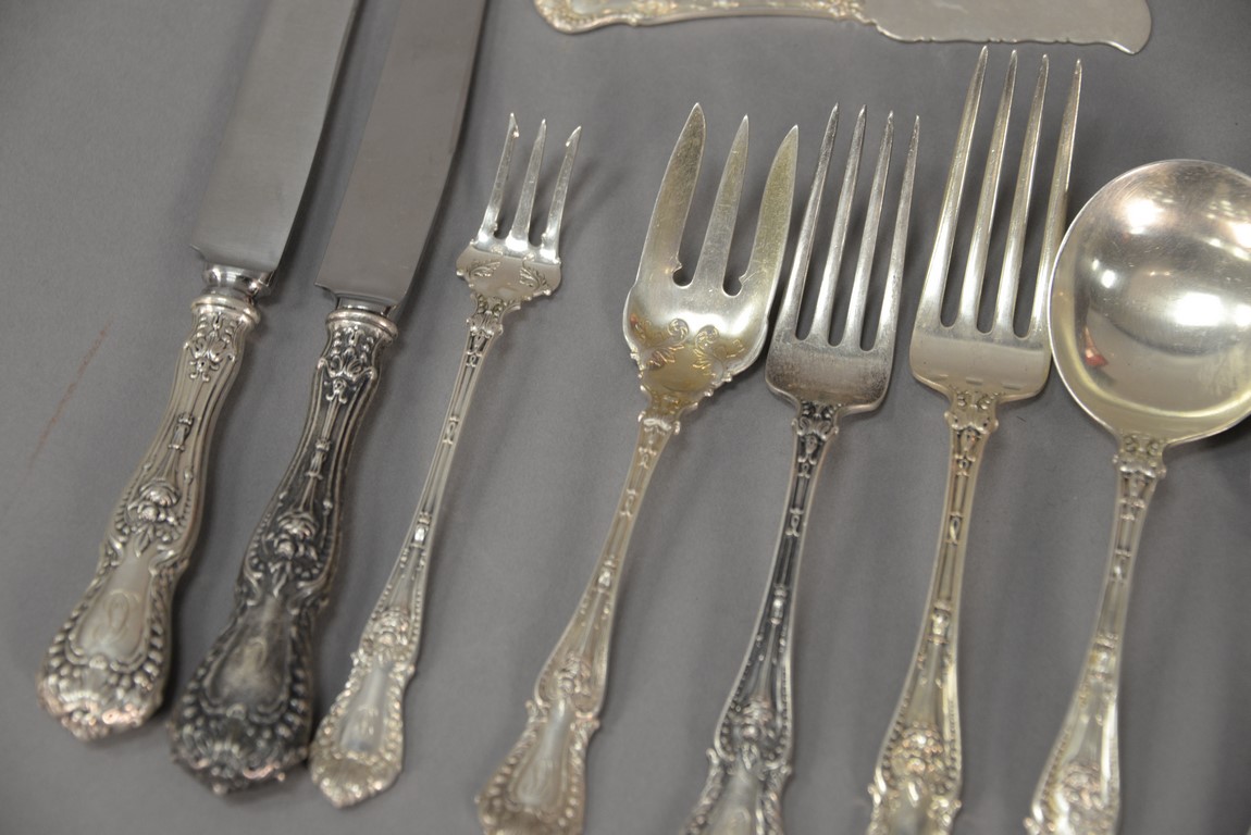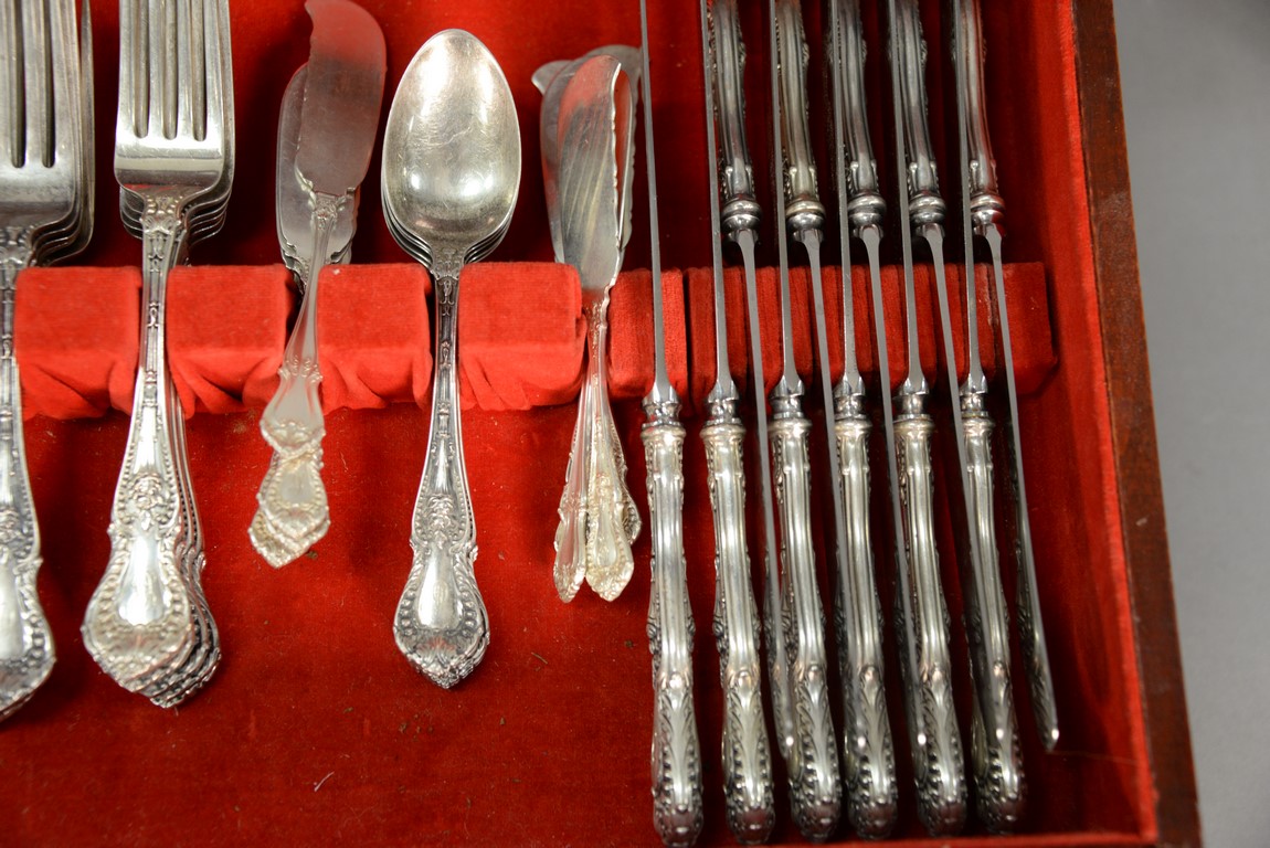Lot 364: Whiting sterling silver flatware set including 12 dinner forks, 12 lunch forks, 12 dessert forks, 12