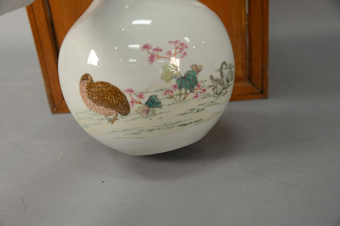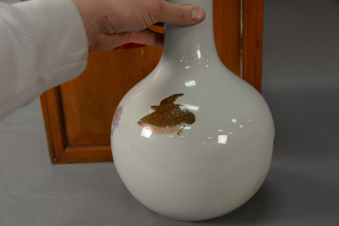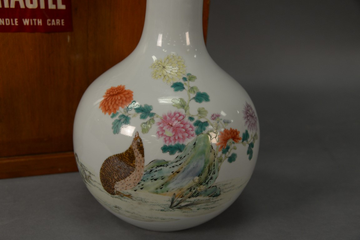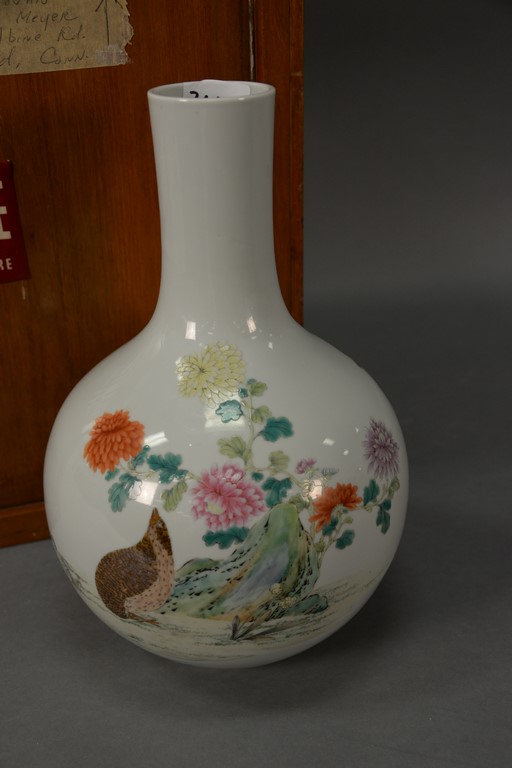 Lot 364A: Chinese famille rose globular vase with flowers and game birds with 18th century blue mark on bottom along with original early shipp…