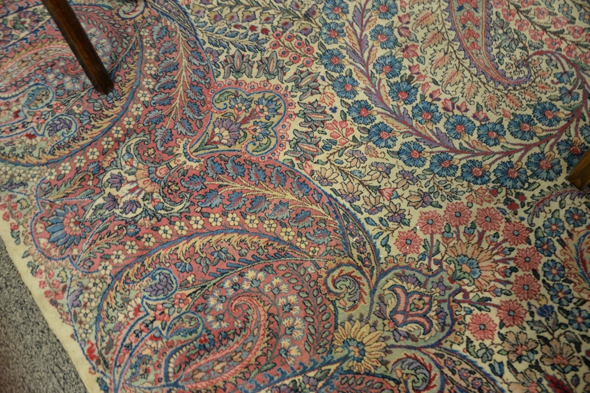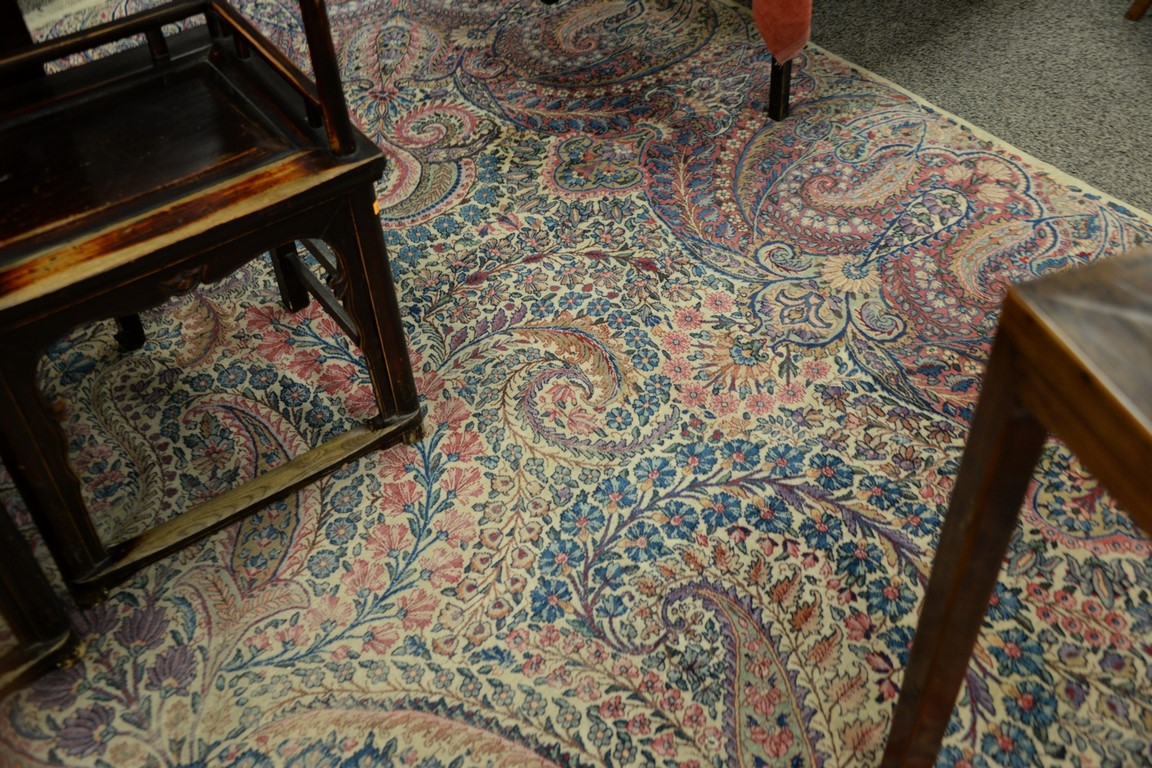 Kirman Oriental carpet some wear. 11’9 x 19’7