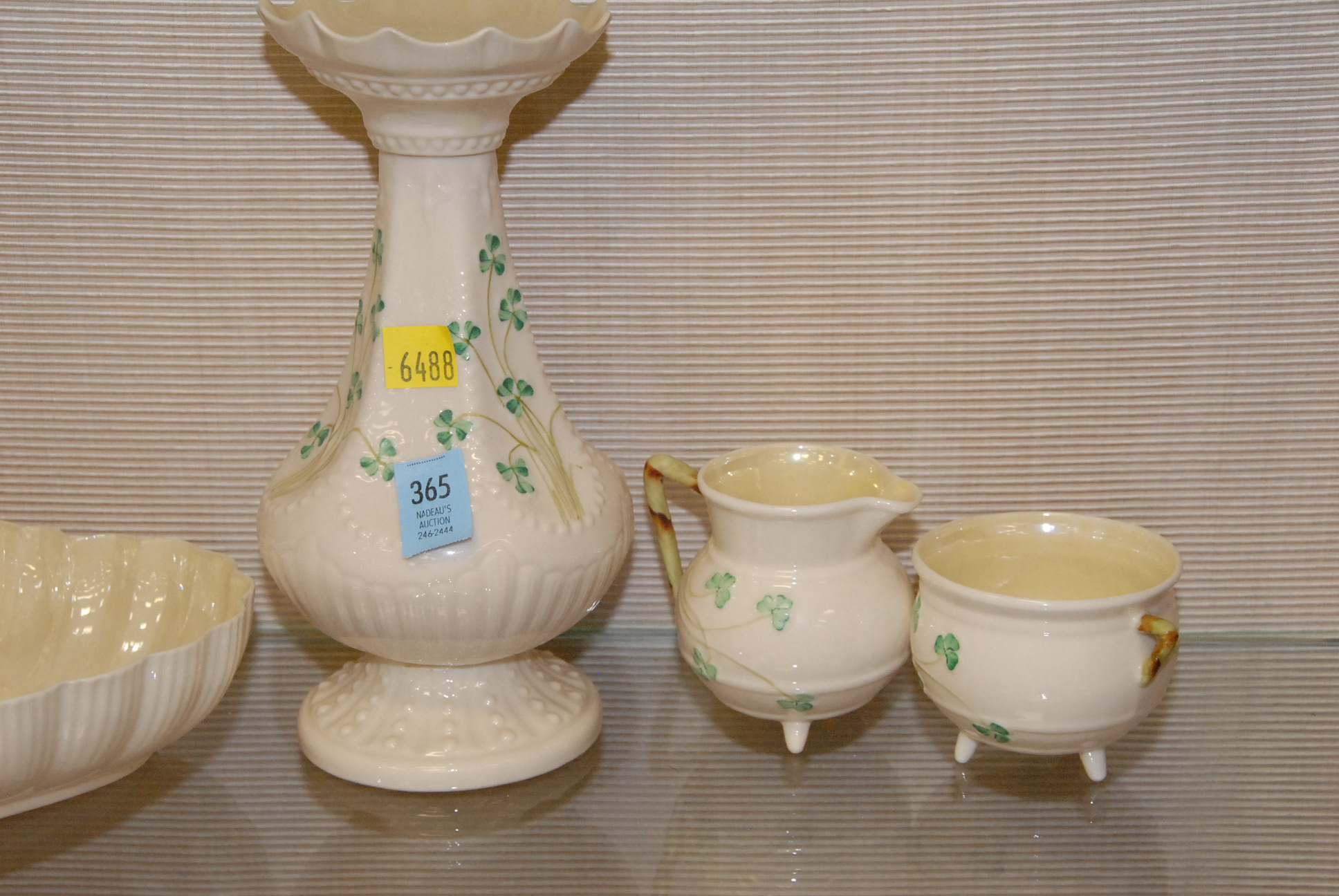 Five piece lot of Irish Belleek. Provenance: Estate of Judy Gengras McDonough of West Hartford, CT.