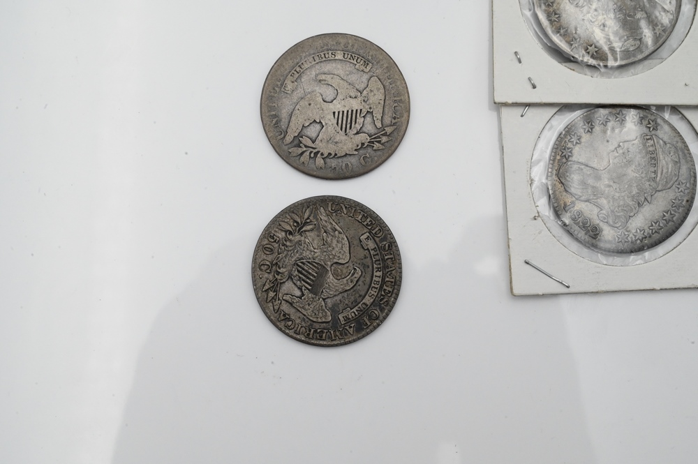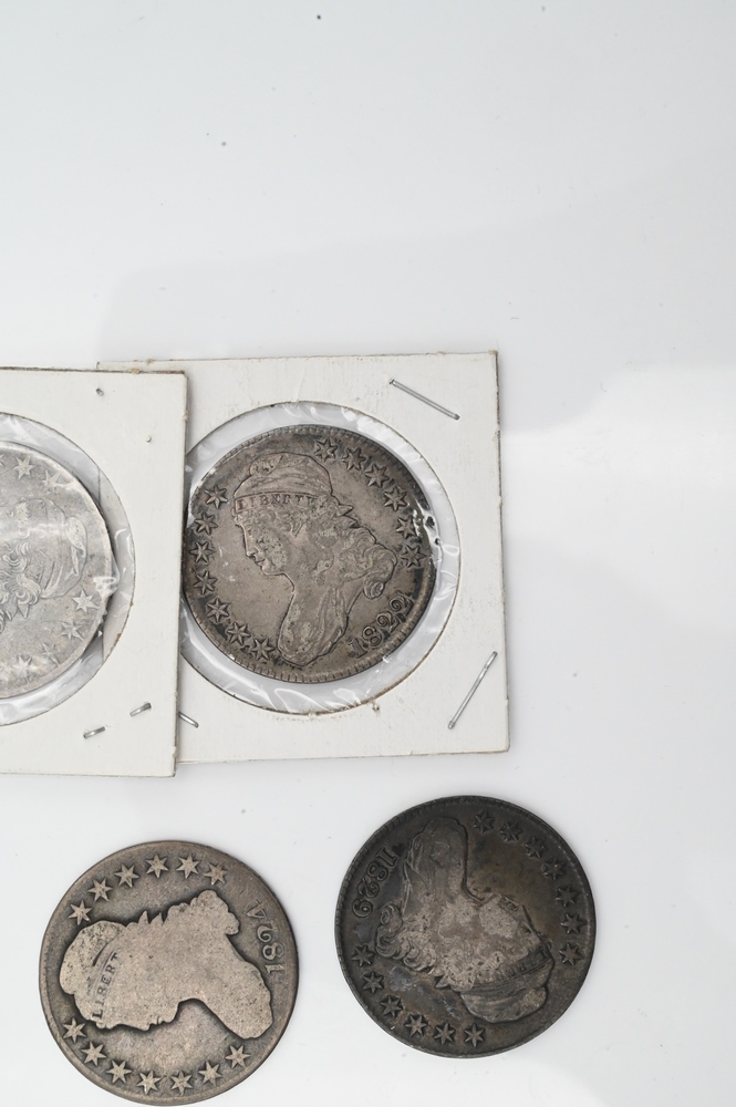Four Capped Bust Half Dollars, to include 1824, two 1825, along with 1822.