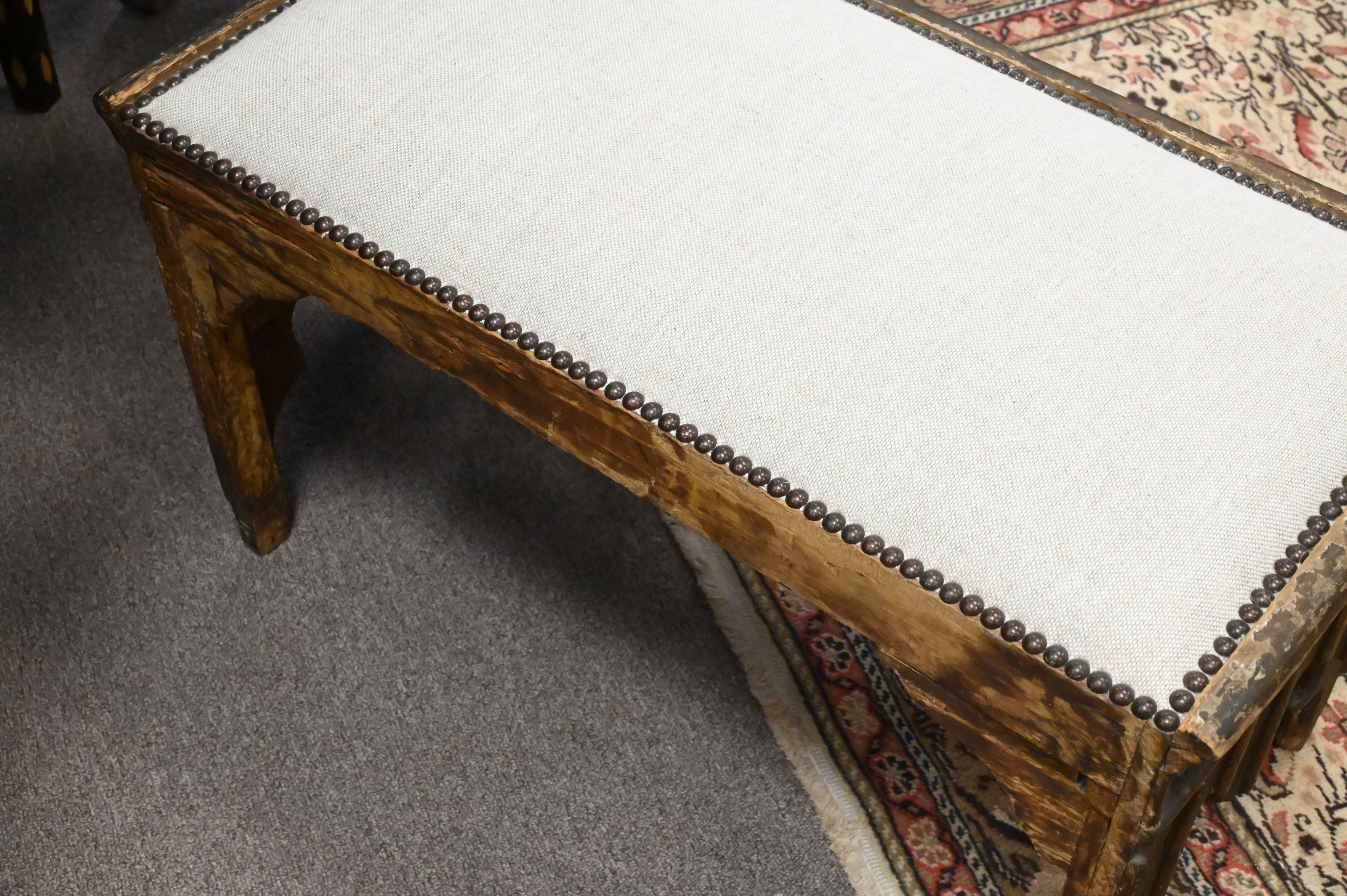 Moroccan Bench having Upholstered Top Over Carved Legs