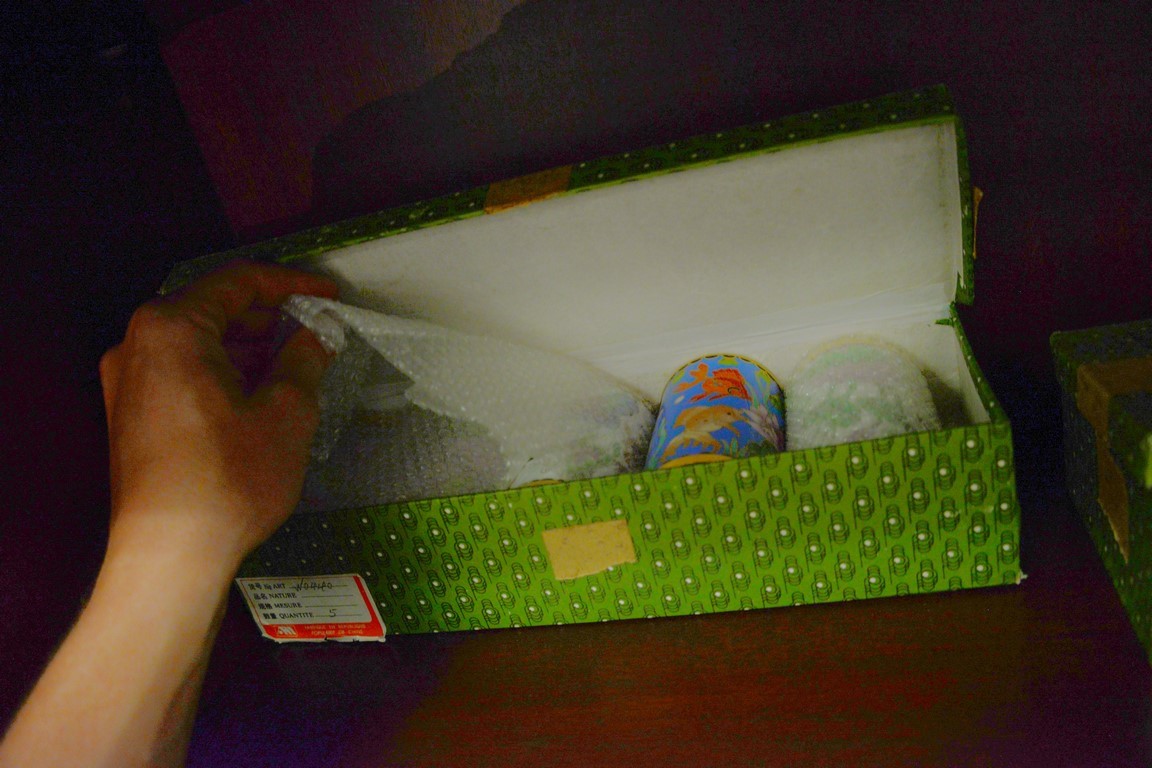 Set of thirty Chinese Cloisonne cups, chrysanthemum and birds, horses, deer, butterflies, fish, and ducks. ht. 4in.