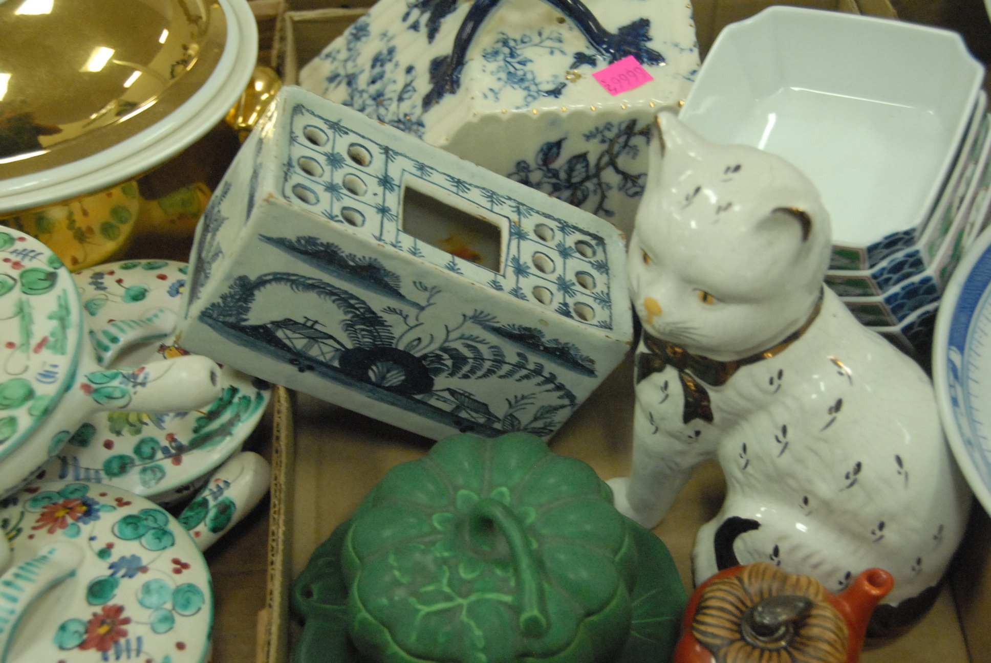 Six box lots of china, Oriental porcelain, Davenport plate, cheese dish, etc.
