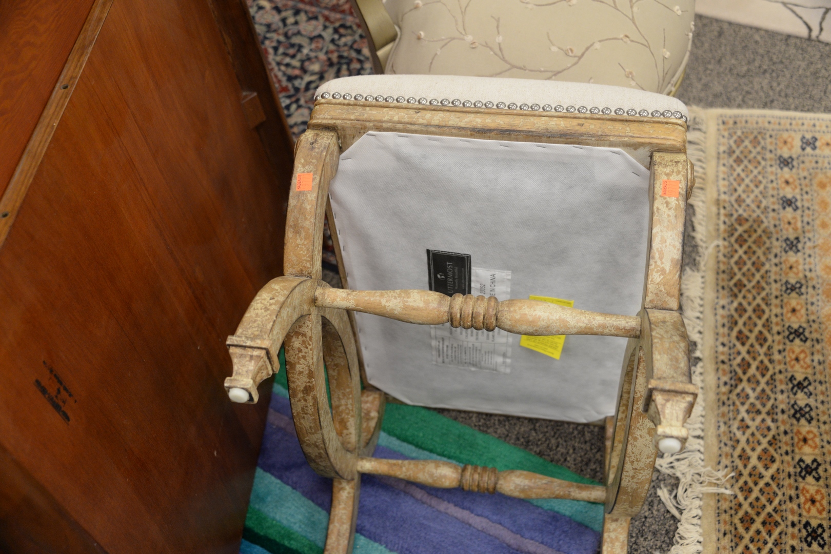 Lot 365: Two Piece Group, to include Carolyn Kinder Karline Bench, along with a Century Louis XVI style side chair, bench height 19 inches, width 24 inches, depth 17 inches.